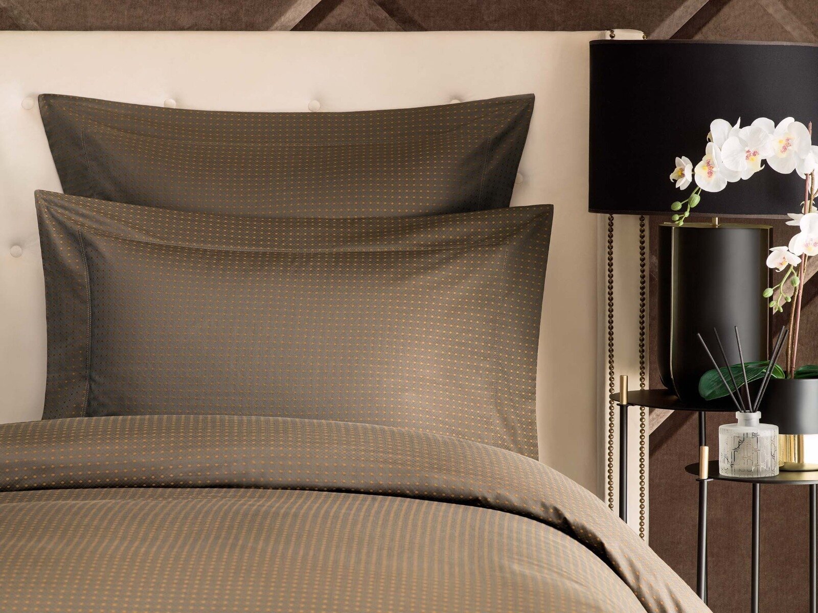 Жаккардовые наволочки «Диксон» изготовлены из лучших сортов длинноволокнистого хлопка. Натуральный хлопок гигроскопичен, «дышит», он практичен и прост в уходе. Из длинных хлопковых волокон получается очень прочный материал, который обеспечивает постельному белью высокую гигиеничность. Благодаря особой плотности ткани белье долго прослужит, не деформируясь, и сохранит свою красоту даже после многократных стирок. «Диксон» украшает мелкий геометрический орнамент, созданный с помощью сложного жаккардового плетения нитей. Ткань выглядит изысканно и обладает легким рельефом поверхности. Этот неброский комплект выполнен в классическом стиле. Приглушенная серо-коричневая палитра – хорошее решение для спальни мужчины.