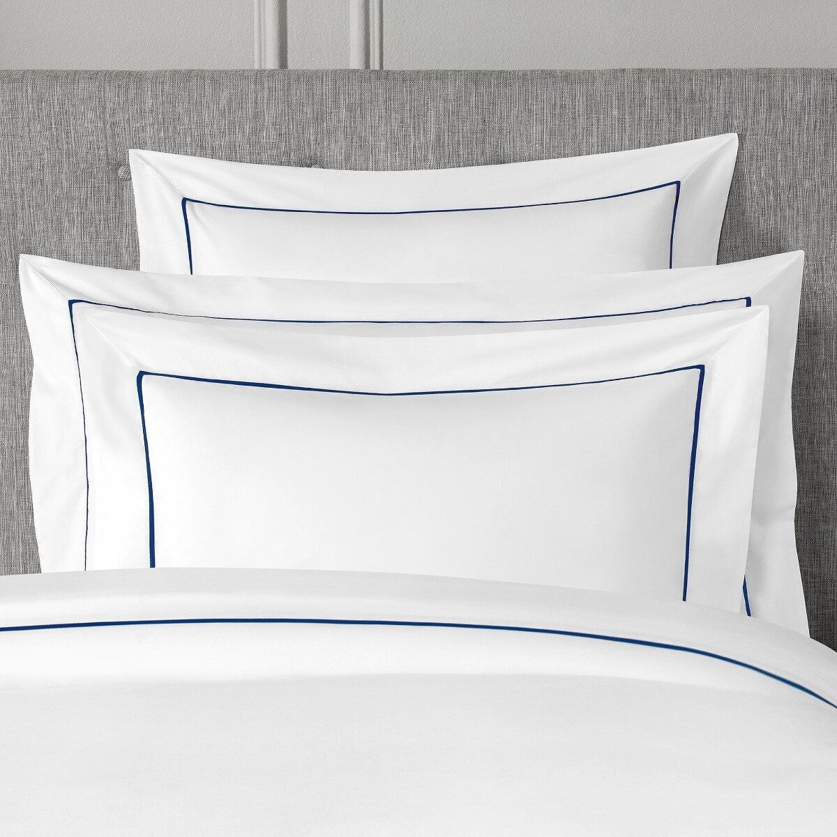 Наволочки «Плаза» изготовлены из мягкого, бархатистого Роял сатина. Его необыкновенная мягкость – результат специальной обработки лицевой стороны ткани. Роял сатин имеет очень нежную текстуру, это в высшей степени гигроскопичный и воздухопроницаемый материал, идеальный для людей с чувствительной кожей, для которых особенно важна мягкая нежность прикосновения. Ткань этой модели создана из лучших сортов длинноволокнистого хлопка. Наволочки не доставят хлопот в уходе: если сушить их, разложив на плоской поверхности, глажка не потребуется. Белоснежный с темно-синим – это элегантная классика. Однотонное постельное белье идеально подходит для любого интерьерного стиля: как классической, традиционной обстановки, так и современного городского дизайна.