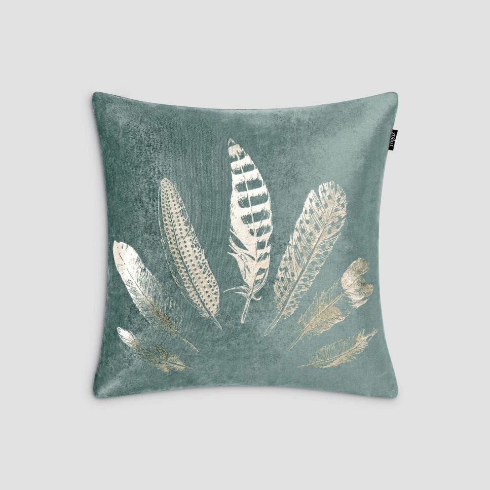 В ткани бархатной декоративной подушки «Валеро» мягкая вискоза сочетается с волокнами натурального экологичного хлопка.Благодаря наличию хлопка наволочка хорошо пропускает воздух и не электризуется. Вискоза в составе изделия делает материал особенно нежным и приятным на ощупь. Текстиль из бархата с красивым блестящим ворсом роскошно выглядит, его часто используют при оформлении интерьеров.«Валеро» – это изысканный оттенок аквамарина и крупный выразительный рисунок, перья разных птиц, нанесенный на ткань методом фольгирования, который позволяет получить яркие блестящие изображения. Этот эффектный текстильный декор не останется незамеченным. Несколько таких подушек создадут роскошный образ интерьера золотой эпохи джаза.