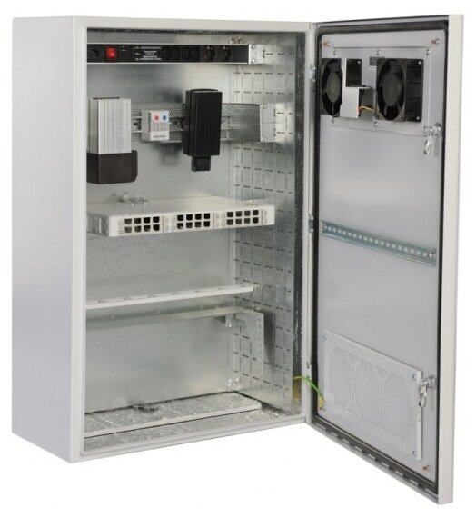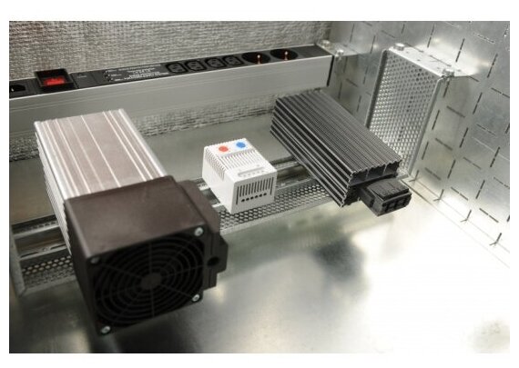 | Особенности | Уровень защиты IP65 (при использовании вентиляции IP54). Металлическая сварная конструкция. Внутри термоизоляционный материал. Дверь шкафа подготовлена для установки вентиляторов моделей МВ-400-2 или МВ-400-2-3, фильтра МВ-Ф. Предустановлена DIN-рейка для установки нагревателей/термореле/гигростата/датчиков. В комплект шкафа входят задняя оцинкованная панель и комплект вертикальных юнитовых панелей 19. Шкаф крепится на стену при помощи 4-х уголков. В основании шкафа предусмотрена съемная заглушка для ввода кабеля. Распределенная нагрузка: 57 кг. Полезная глубина 19 отсека: 420 мм. |