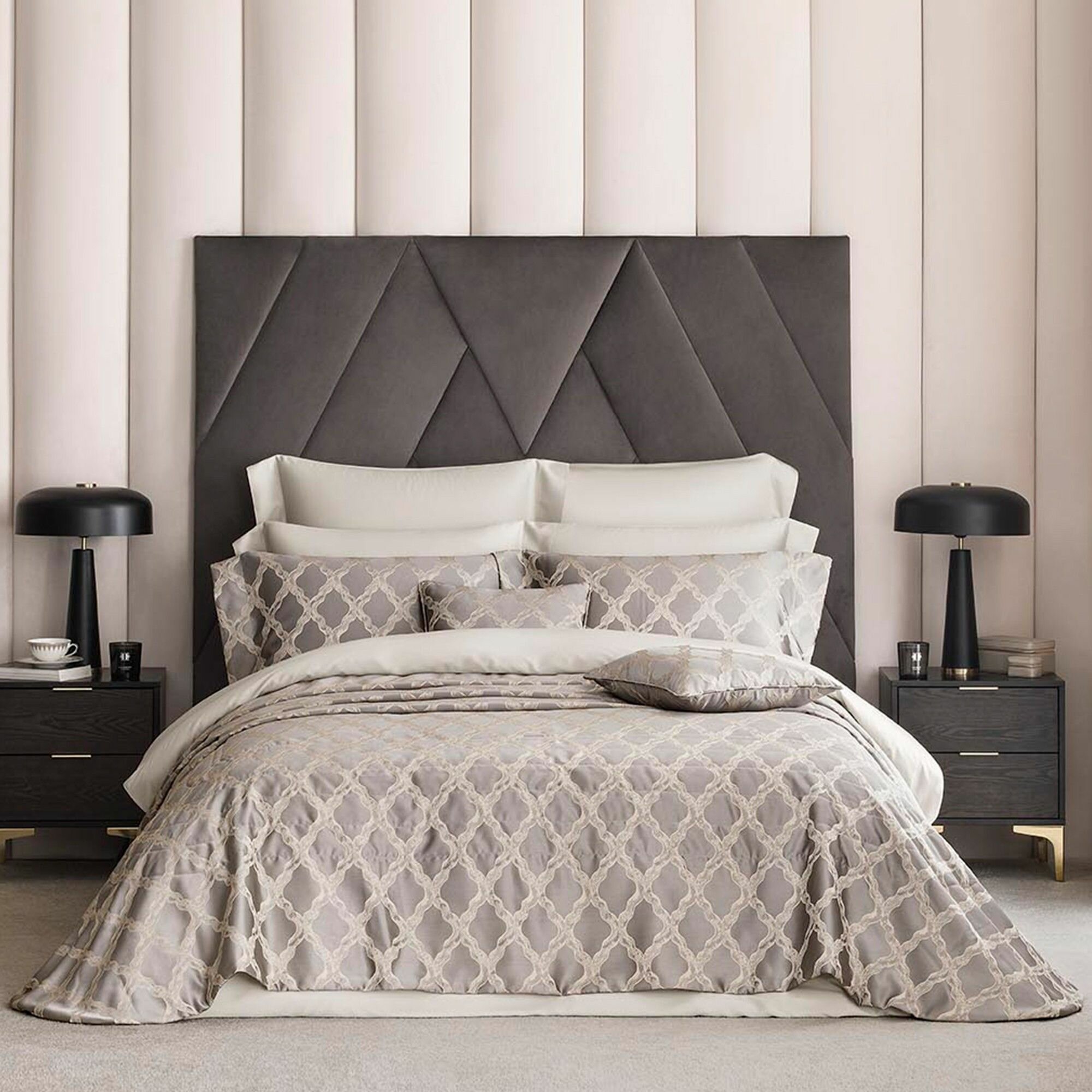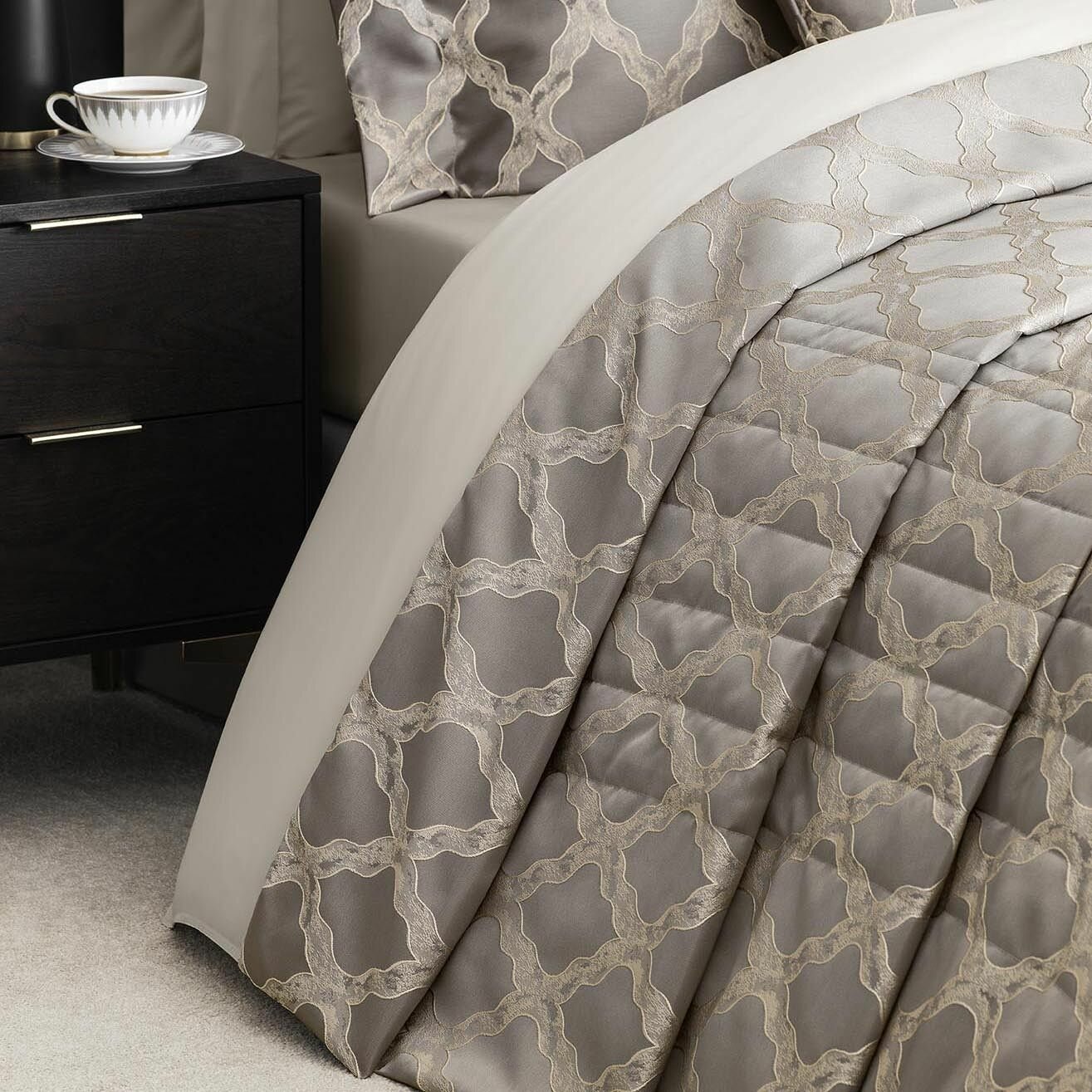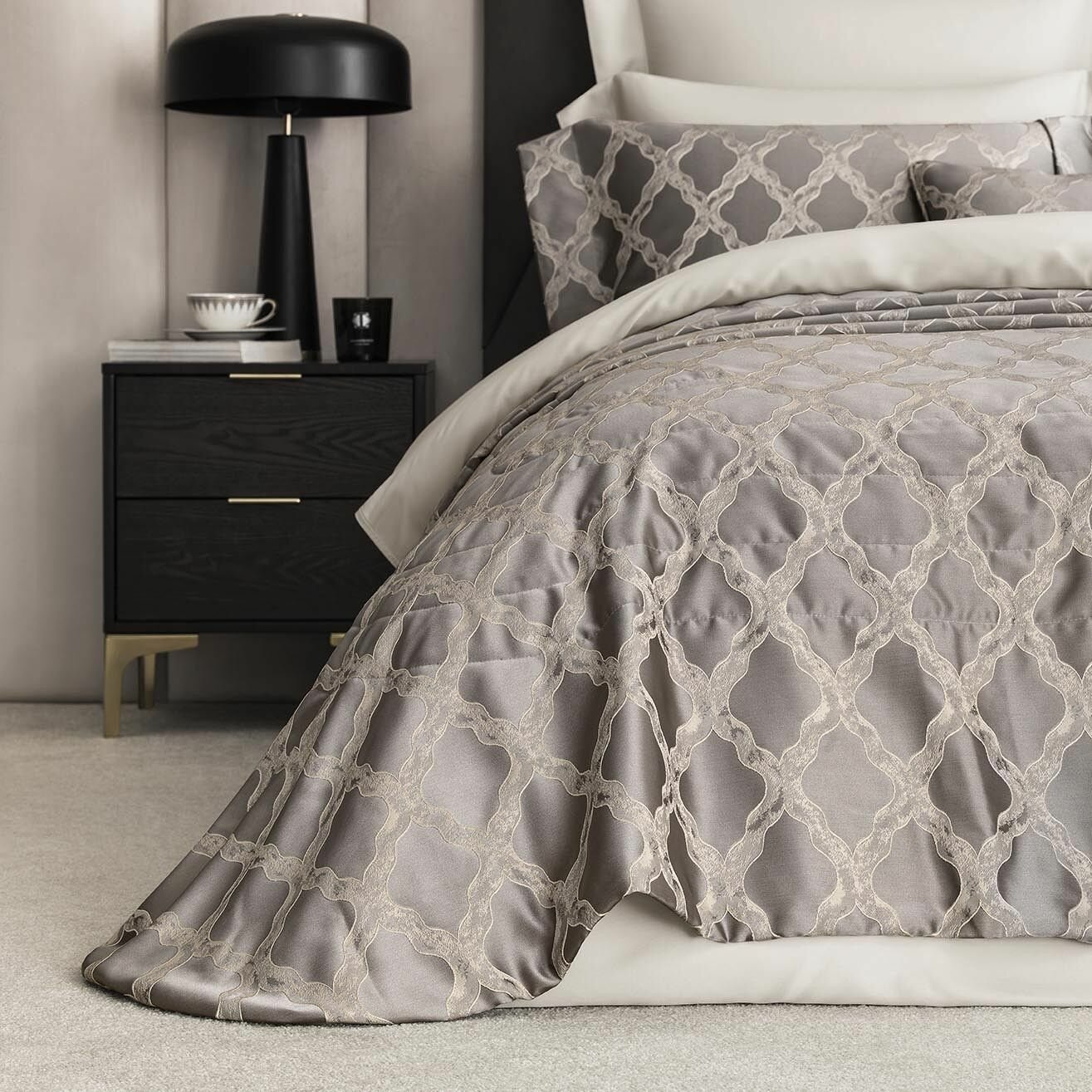 Красивое жаккардовое покрывало «Минелла» изготовлено из прочного полиэстера. Ткани из полиэфирных волокон практически не выгорают на солнце, просты в уходе.Изделие долго прослужит, не теряя своей красоты. Плотная ткань покрывала не мнется и не деформируется спустя время.«Минелла» – итальянский стиль в текстильном декоре. Изысканный пастельный цвет покрывала, оттенок лавандового тумана, и узор «венецианская решетка» украсят классические интерьеры. Этот знаменитый итальянский орнамент, выполненный золотистыми нитями, напоминает изящную решетку на окне венецианского палаццо. Дизайн модели отсылает нас к роскошным, расшитым золотом тканям эпохи Ренессанса.