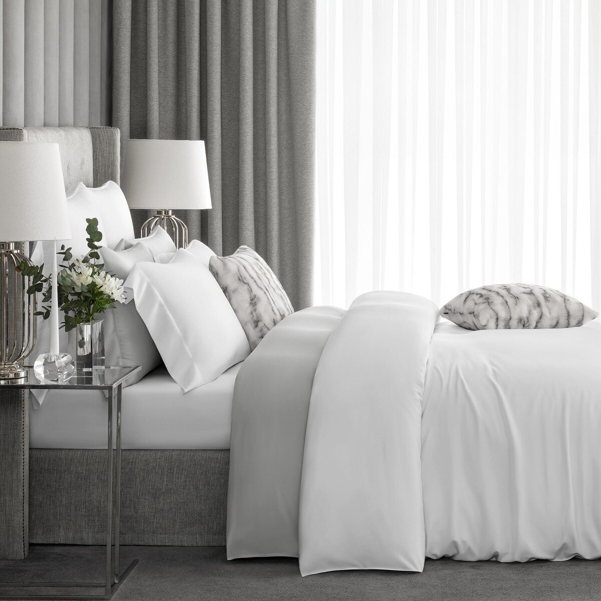 Белоснежная простыня «Сенса» создана из инновационной ткани Sensoteх. Этот мягкий, шелковистый материал из природных волокон эвкалипта пропитан специальным раствором Kefalis на основе экстракта водорослей Ионического моря. Такая обработка делает его на 10% прочнее, на 20% менее сминаемым и на 30% повышает шелковистость ткани. Sensotex – экологически чистая ткань, при ее производстве применяется только органический растворитель. Она прекрасно пропускает воздух, «дышит», способна регулировать температуру – на таком белье комфортно спать в любое время года, а в жаркую погоду прикосновение к нему подарит легкую прохладу. Sensotex тактильно приятен и подходит людям с чувствительной кожей.