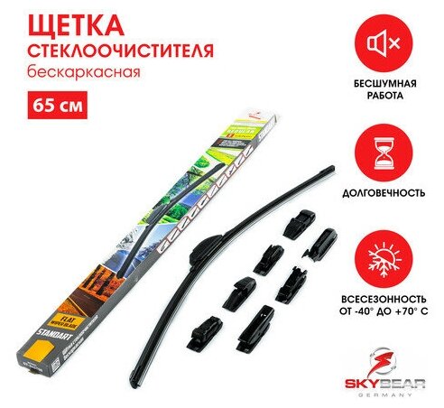 Щётка стеклоочистителя 26"/65 см бескаркасная SKYBEAR REGULAR 7 адаптеров 702260