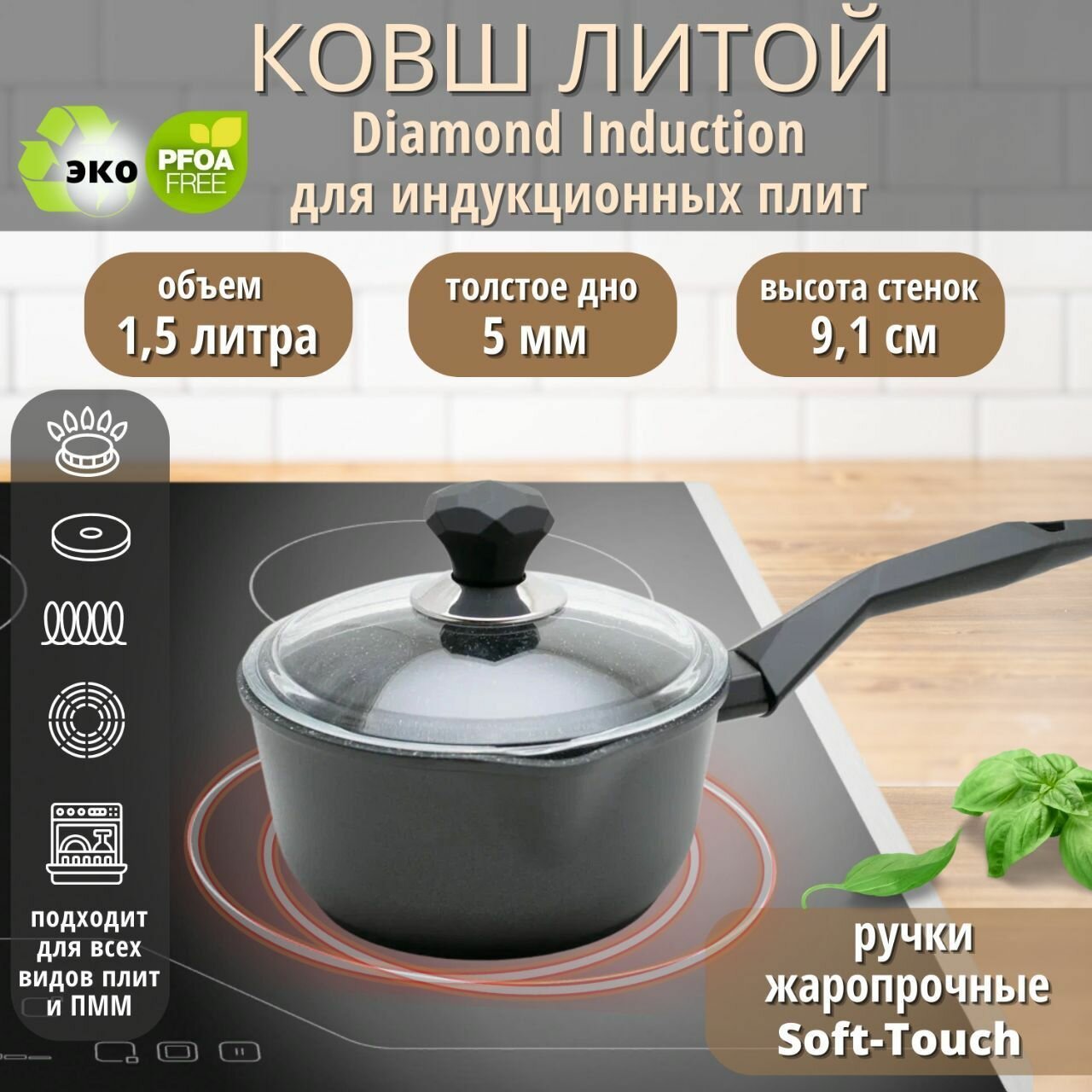 Для всех типов плит, включая индукционные. Цвет черный с белыми крапинками. Внутри: трехслойное покрытие Corrosino, снаружи: декоративное покрытие Silibasick/Xylac, окрашенное дно, эргономичные бакелитовые ручки с покрытием Soft-touch. Посуда изготавливается исключительно из пищевого сплава алюминия в соответствии с нормативными документами СТБ 469-99, ГОСТ Р 51162-98. Благодаря оптимальному соотношению толщины дна и стенок и усиленному бортику исключается возможность деформации посуды в процессе приготовления пищи.