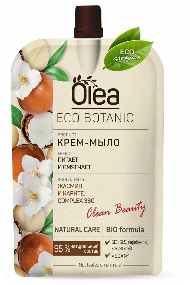 Источник вдохновения серии продуктов Eco Botanic – природа и ее богатства. OLEA Eco Botanic совмещает эффективный уход на каждый день, эстетику и силу природных компонентов в одном продукте. Крем-мыло OLEA было создано для бережного и деликатного очищения кожи рук, ее смягчения и питания. Формула средства содержит экстракты Жасмина и Карите и уходовый Complex 360 на основе экстракта Сосны приморской. Экстракт Жасмина – смягчает кожу, увлажняет и успокаивает, оказывает антисептическое действие. Экстракт Карите – обладает питательными и смягчающими свойствами, улучшает регенерацию, оказывает защитное действие. Complex 360 – в его основе экстракт Сосны приморской, который охватывает основные потребности кожи и оказывает многофункциональное действие: является мощным антиоксидантом, улучшает синтез коллагена, поддерживает необходимый уровень увлажнения, оказывает успокаивающее действие, тонизирует, защищает кожу от внешних загрязнений. Экстракт Сосны приморской является 100% натуральным компонентом и обладает сертификатом COSMOS.