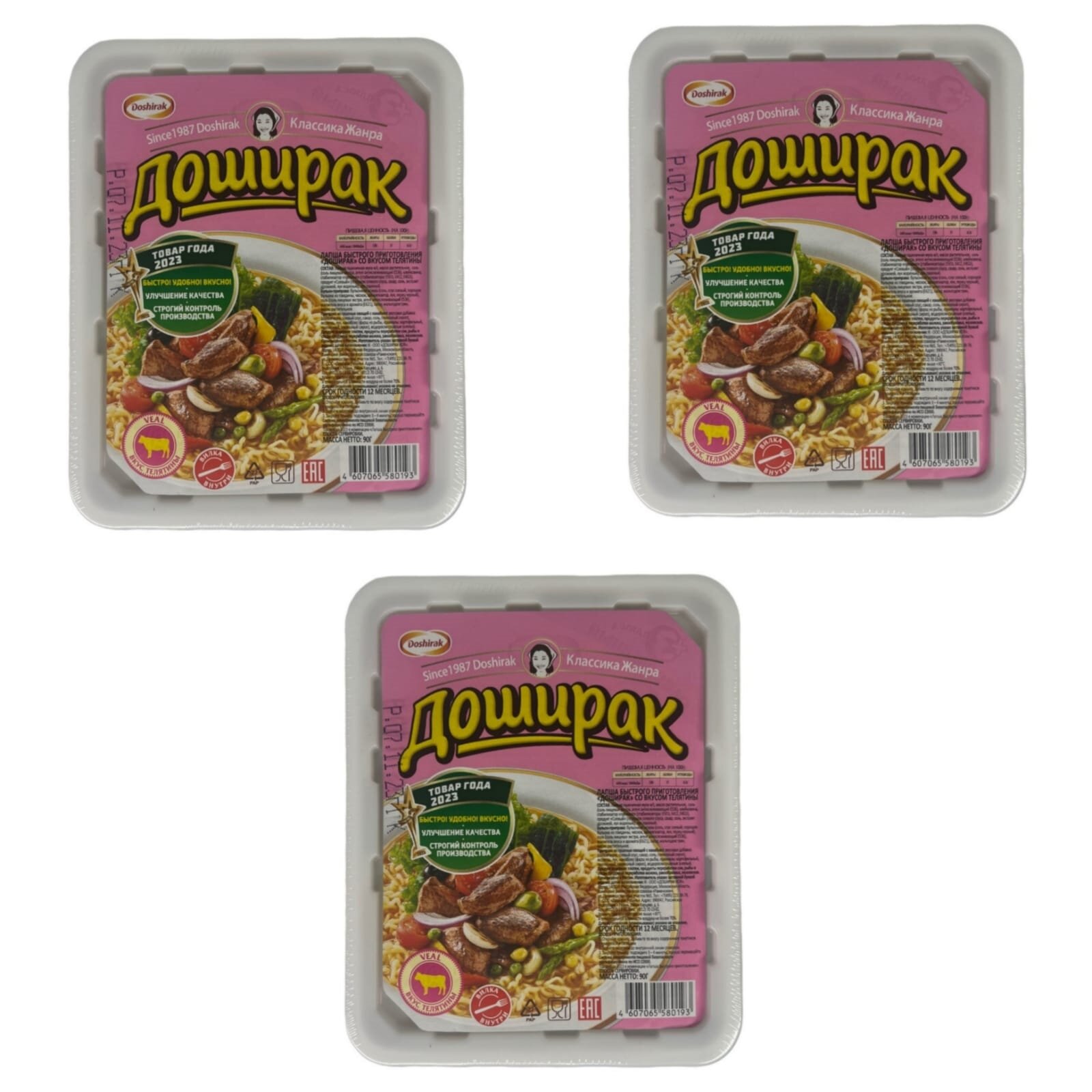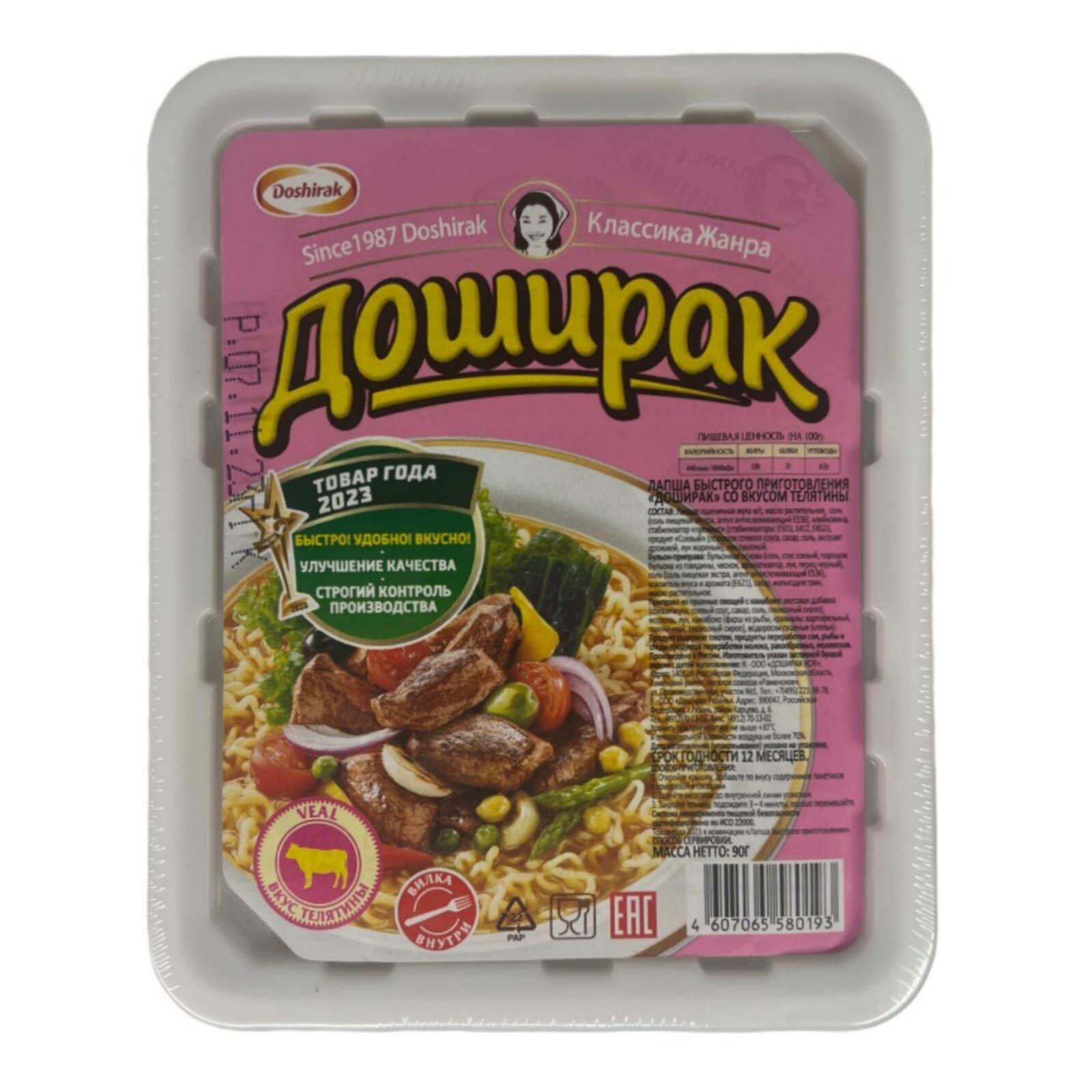 Doshirak Лапша со вкусом телятины быстрого приготовления 90 г 24 шт. Доширак