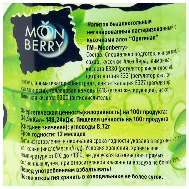 Напиток сокосодержащий MoonBerry Aloe Vera с кусочками алоэ 0.5 л 500 г