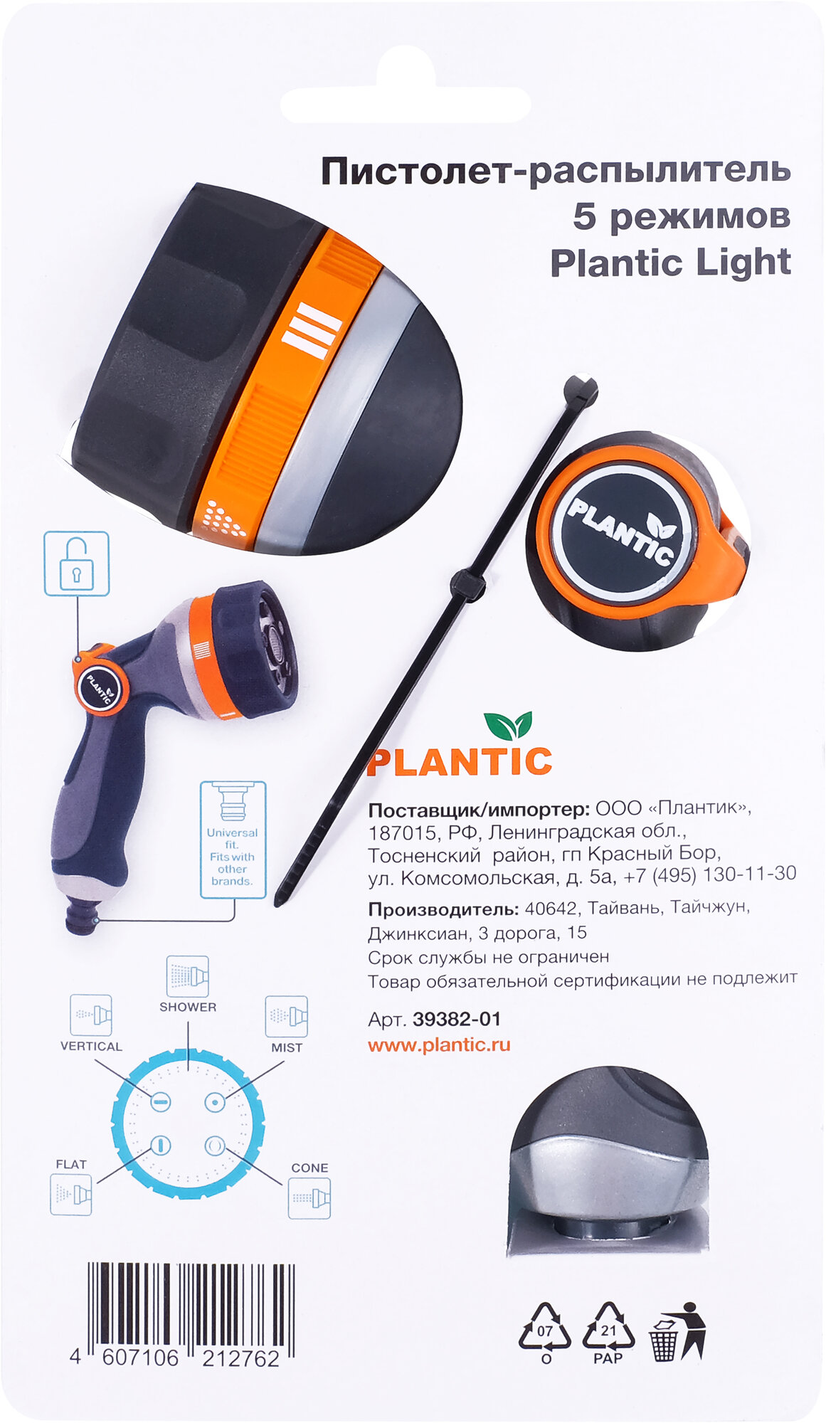 Пистолет-распылитель 5 режимов Plantic light (39382-01)