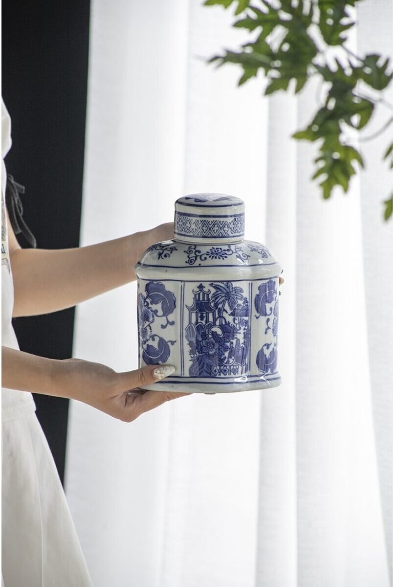 Ваза Glasar фарфоровая с крышкой в классическом китайском стиле 16х12х20см