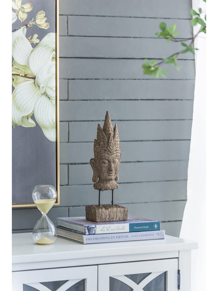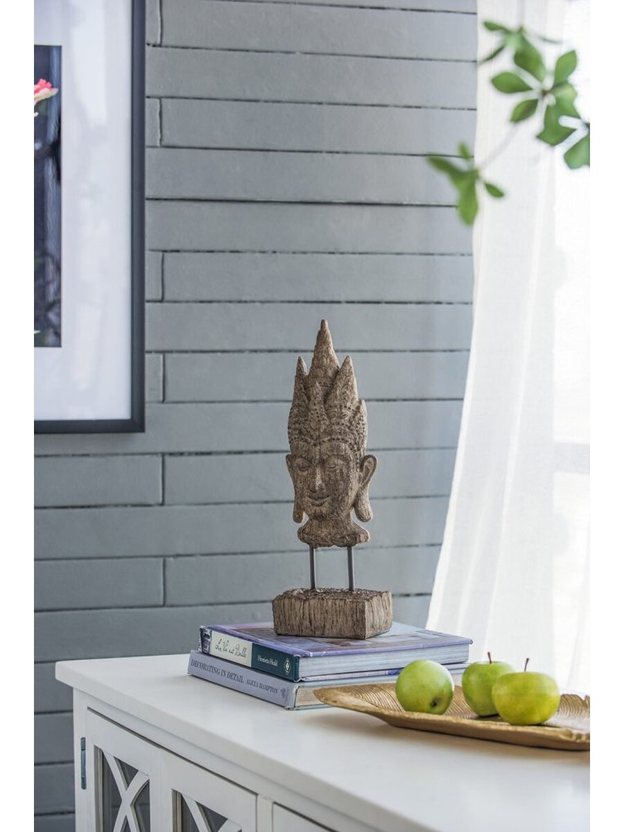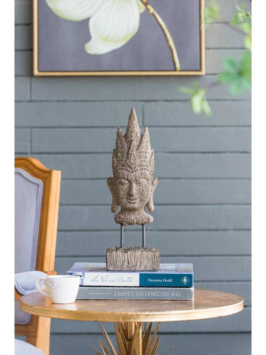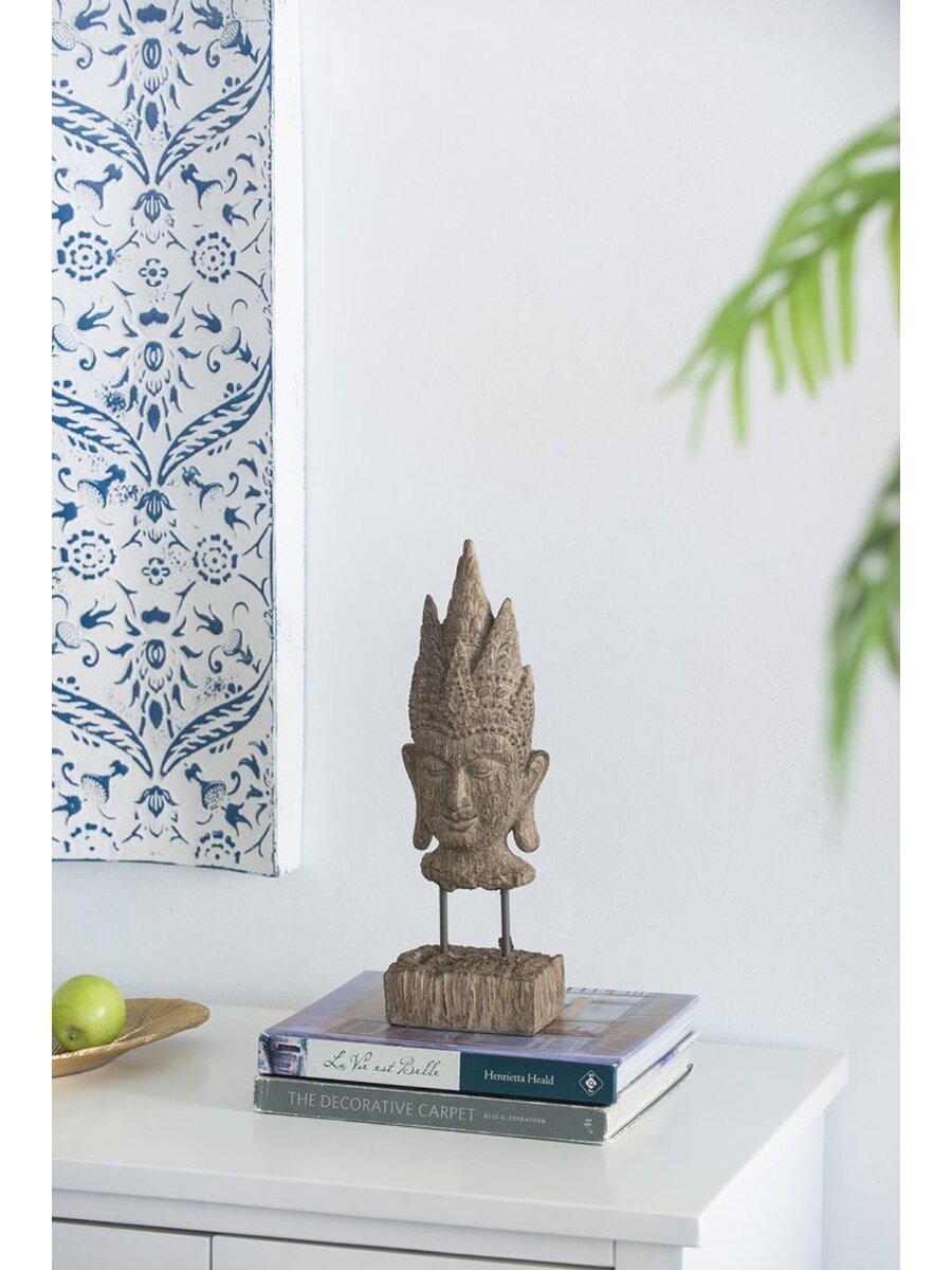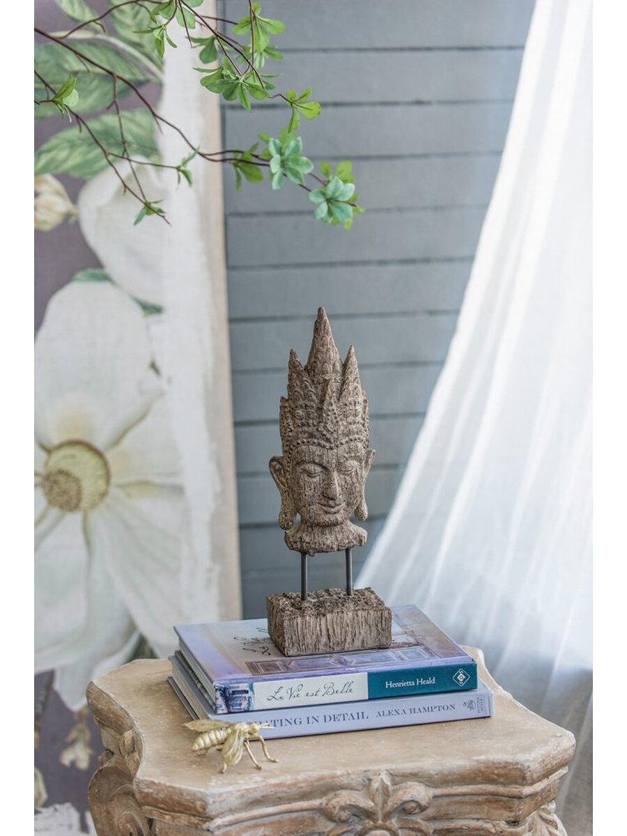 Вдохновляйтесь в любом месте вашего дома с этой безмятежной скульптурой головы Будды. Теплая расцветка и богатая текстура напоминают выдержанную деревянную резьбу.