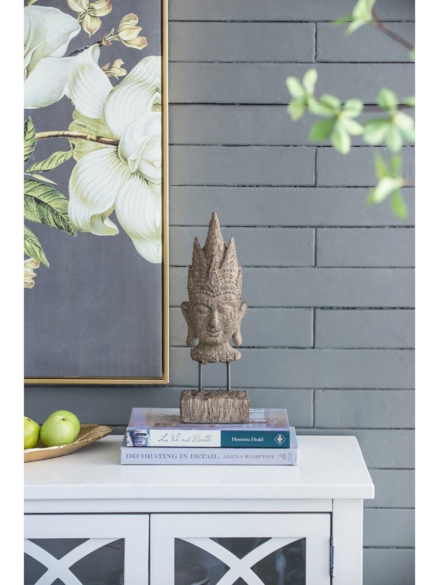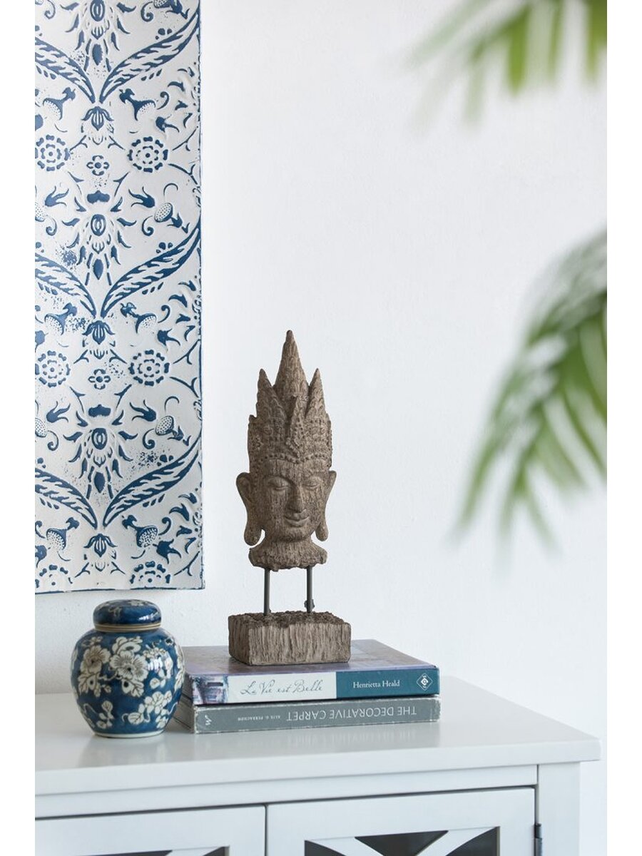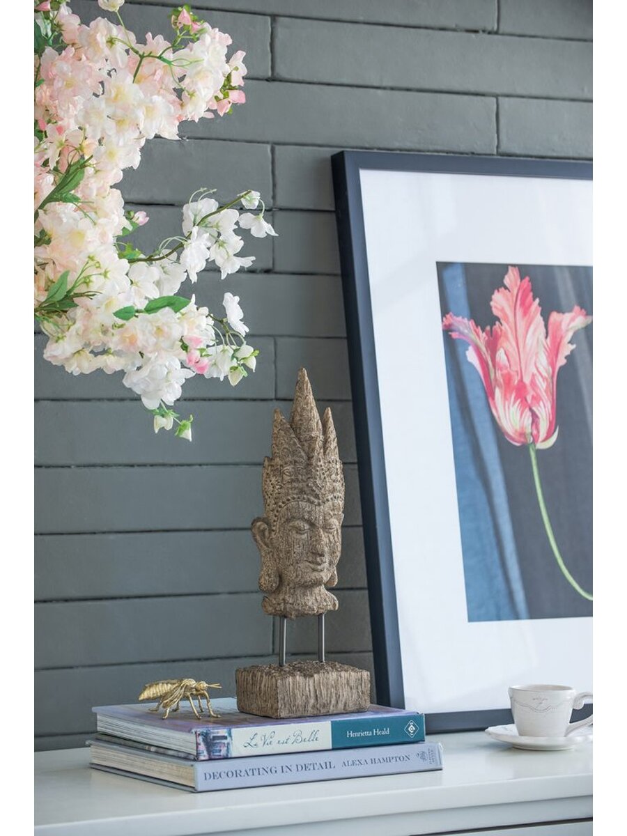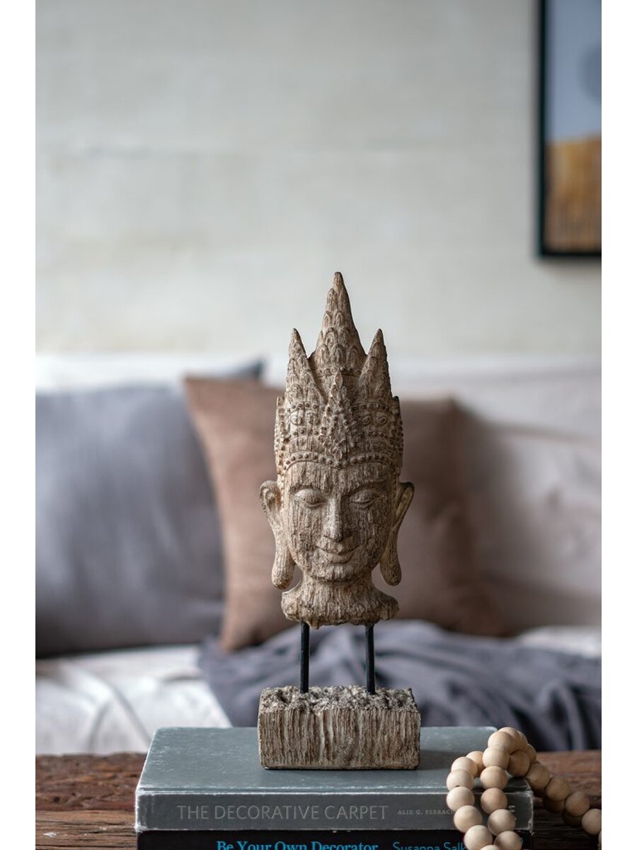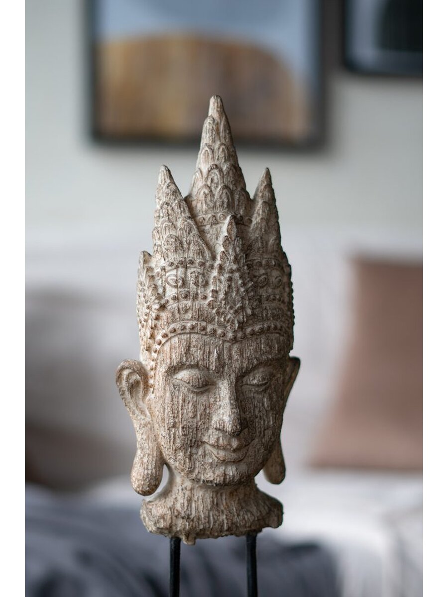 Вдохновляйтесь в любом месте вашего дома с этой безмятежной скульптурой головы Будды. Теплая расцветка и богатая текстура напоминают выдержанную деревянную резьбу.