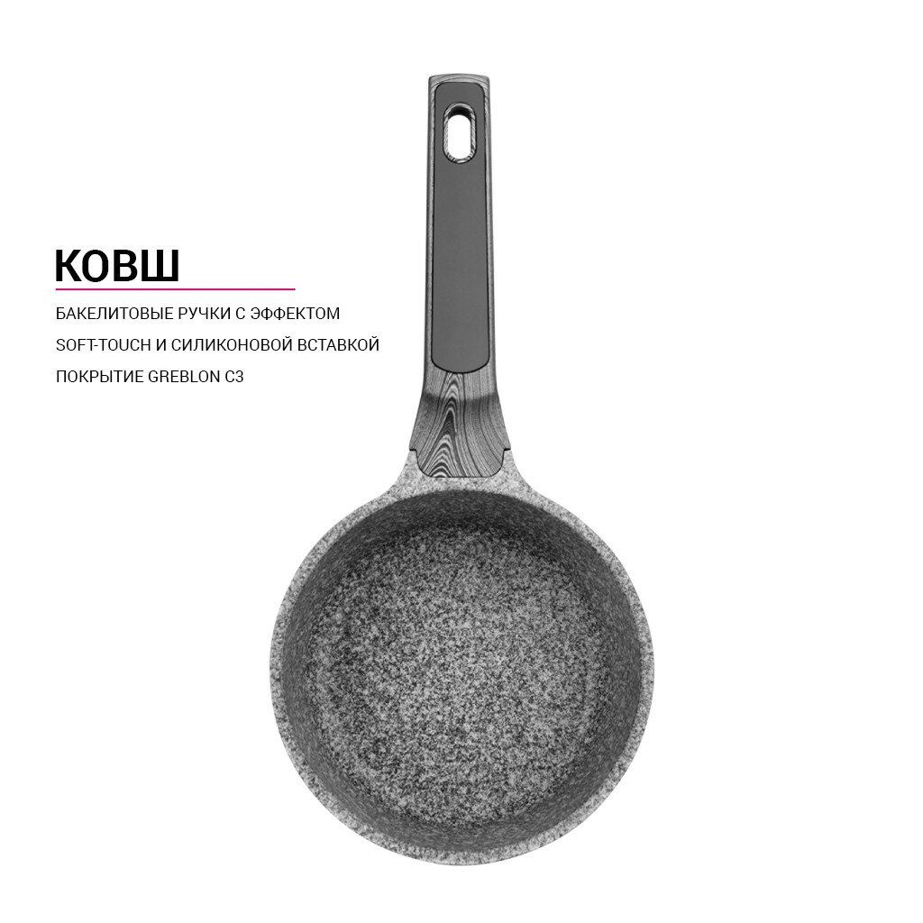 Новая серия PRESTIGE от FISSMAN – это настоящий технологический прорыв в создании посуды! Покрытие Greblon С3 было разработано и произведено в Германии, опытными технологами компании Greblon (www. greblon. com). Инновационное многослойное антипригарное покрытие Greblon С3 обладает исключительными свойствами: оно устойчиво к истиранию и ржавчине за счет керамических частиц, входящих в его состав. Абсолютная безопасность для здоровья, экологичность и удобство, в сочетании с современными технологиями – вот отличительные черты серии PRESTIGE. Лучшее решение для вашей кухни! • Покрытие Greblon С3 высоко оценено профессиональными поварами по всему миру. • Поверхность устойчива к износу, повреждениям, коррозии. • Состав покрытия - исключительно экологичное сырье: в нем нет соединений, несущих угрозу здоровью и окружающей среде. • Благодаря особой технологии нанесения покрытие на ощупь и визуально является эквивалентом натурального камня. • Стеклянная крышка с силиконовым ободком плотно прилегает, не скользя и не царапая покрытие, позволяет наблюдать за готовностью пищи, не открывая посуду, тем самым, исключая попадания брызг на кожу и одежду. • Ковш удобен для варки яиц, каш, пельменей, макарон в небольших количествах, кипячений воды и молока. • Оригинальный дизайн делает изделия PRESTIGE украшением кухни: благородный вид внутреннего покрытия, стильное оформление в глубоком графитовом оттенке снаружи. • Бакелитовые ручки с эффектом soft-touch и силиконовыми вставками, выполненные в благородном сером оттенке ‘под дерево’, приятны на ощупь, не скользят в руках, не нагреваются во время готовки. • PRESTIGE--это полный набор посуды для разных видов блюд: сковороды, ковши, сотейники, кастрюли. Неоспоримое достоинство изделий PRESTIGE - совместимость со всеми варочными поверхностями, включая стеклокерамические и индукционные. Посуда PRESTIGE от FISSMAN — это выбор тех, кто не терпит компромиссов, когда речь идет о качестве. Каждое изделие - словно произведение искусства, сочетающее в себе надежность, универсальность и долговечность. Приобретая такую посуду, вы делаете вклад в самое дорогое, что у нас есть - здоровье. Улучшайте свой быт, выбирая лучшее из того, что предлагает FISSMAN.