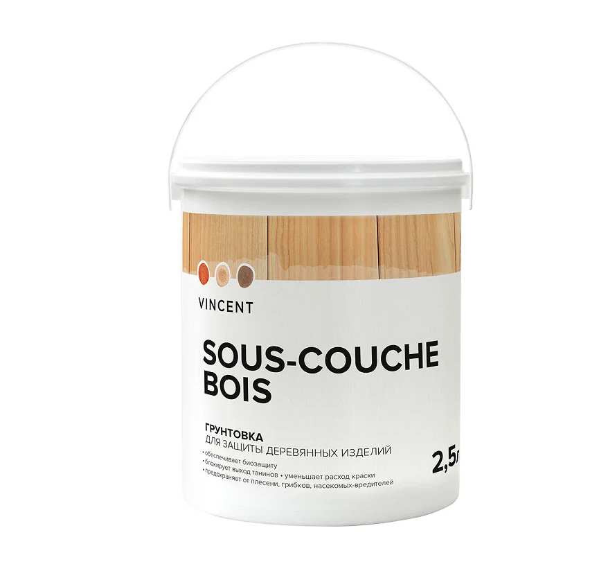Грунтовка Vincent Sous couche bois / Винсент Су Куш Буа для защиты деревянных изделий 2.5л бесцветный