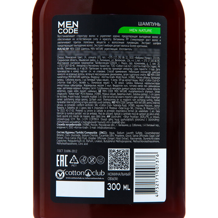 Сервис сравнения цен СкидкаГИД предлагает сравнить цены на товар «Шампунь для волос Men Code Nature Укрепляющий 300 мл»