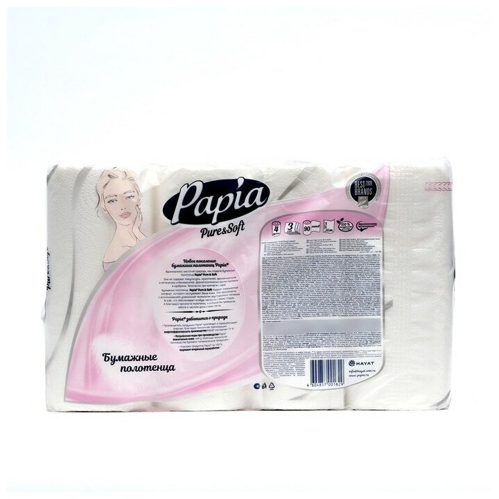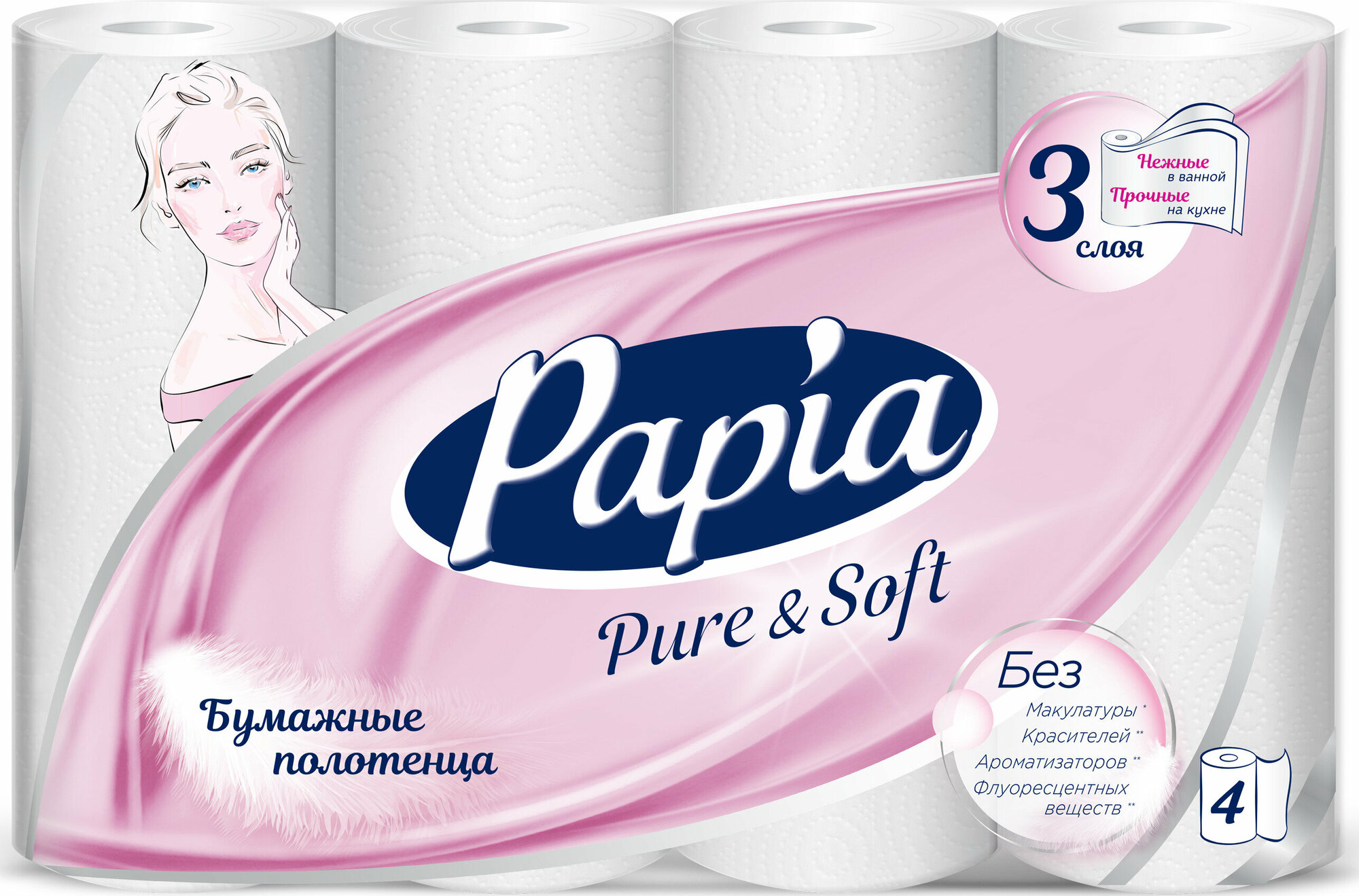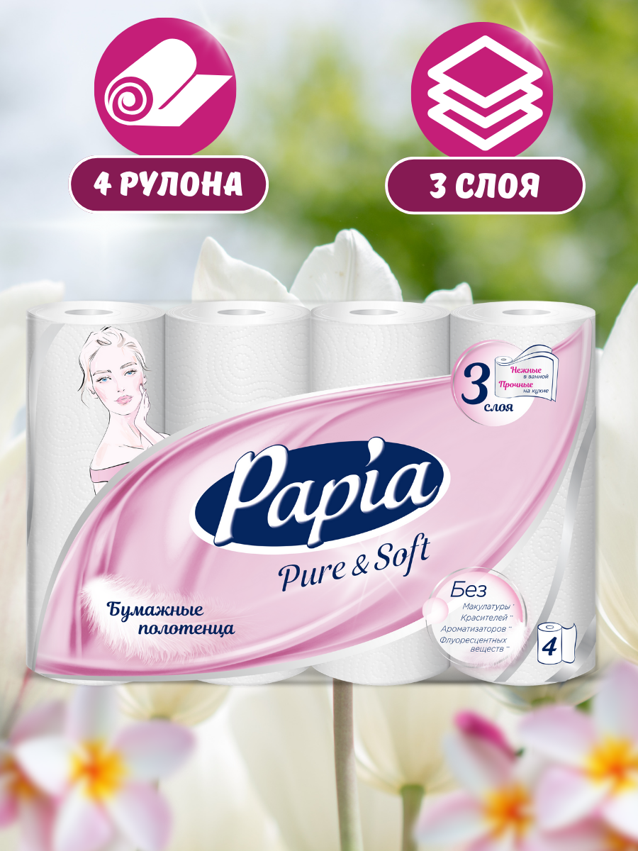 Полотенца бумажные Papia Pure & Soft 3 слоя 4 рулона