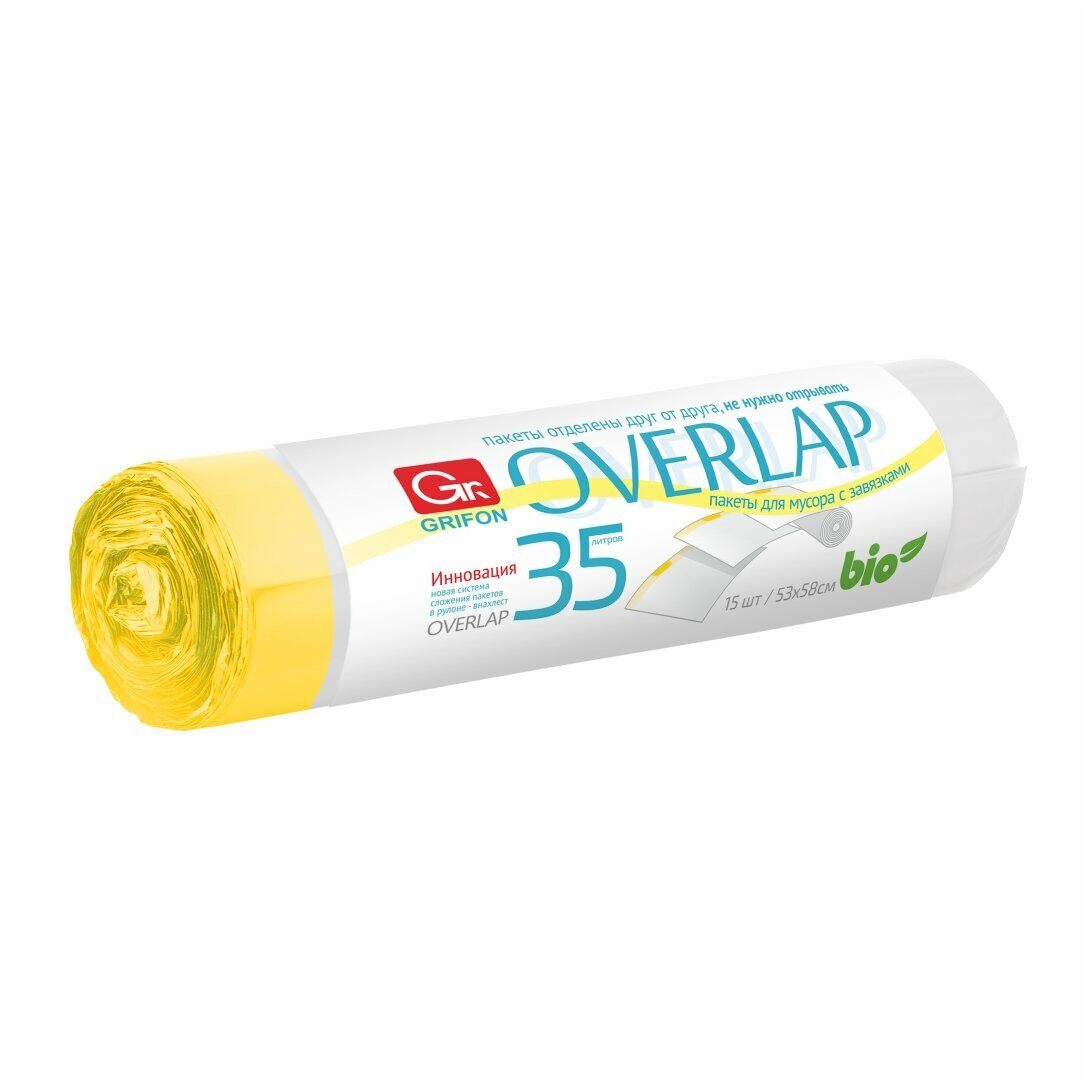 Мешки для мусора Grifon Био Overlap с завязками желтые 35 л 15 шт