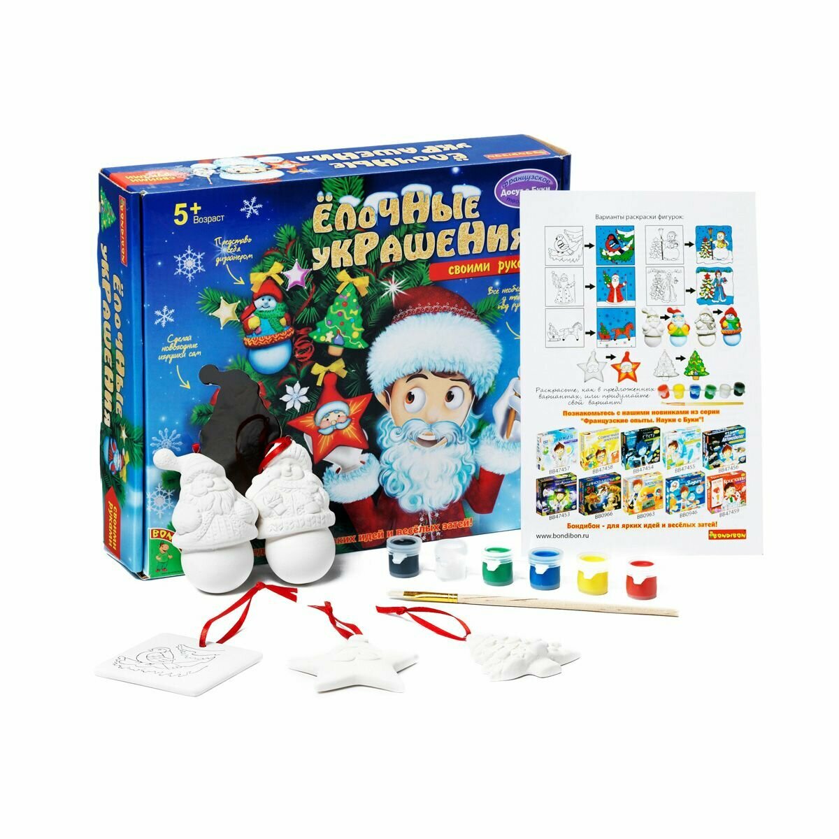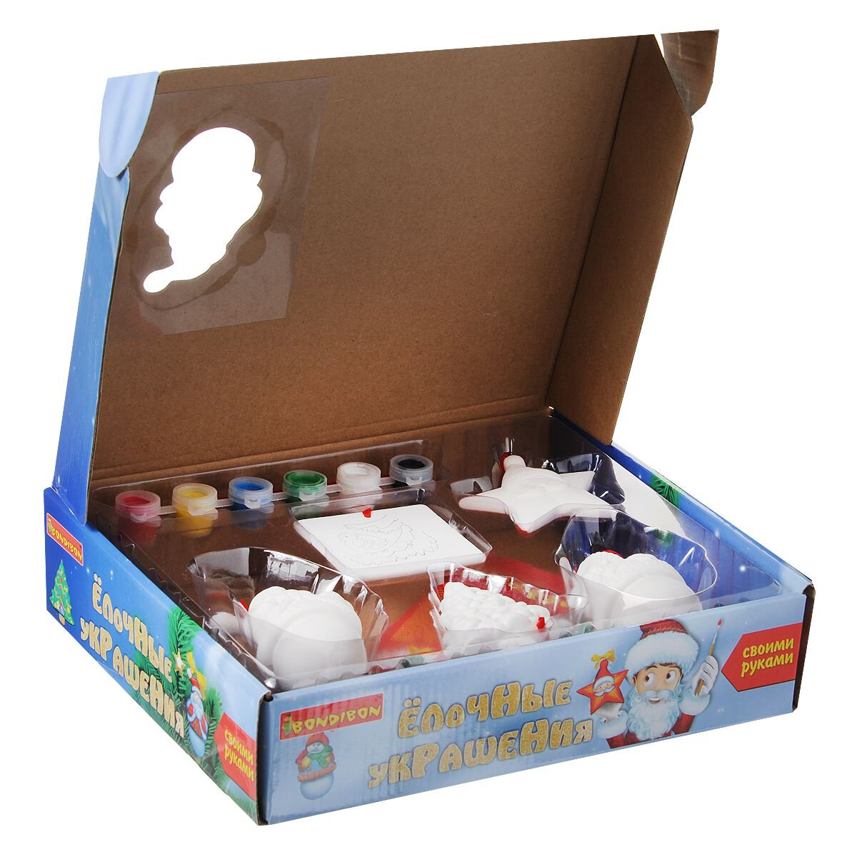 BONDIBON Набор для творчества Ёлочные украшения. Дед Мороз Снеговик елка звезда квадрат ВВ0972