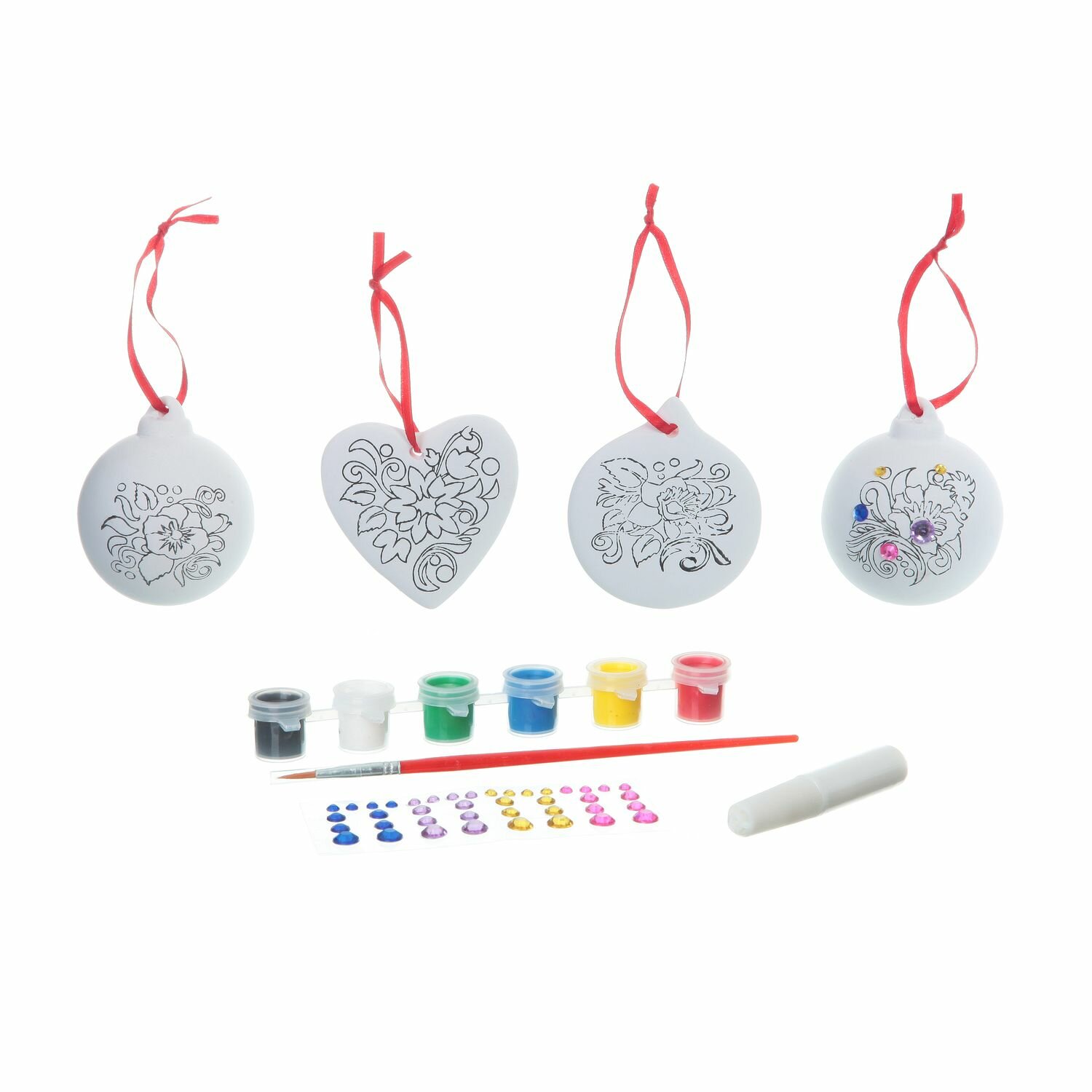 Процесс создания чего-то своими руками необычайно интересен и познавателен. В наборе 4 керамические фигурки для раскрашивания:2 шарика, круг, сердце, разноцветные краски, кисточка и стразы. Попробуйте свои силы, и Вы получите чудесное украшение на новогоднюю елку или фигурку-подарок.