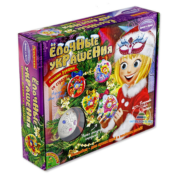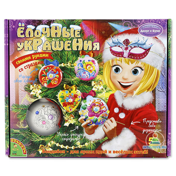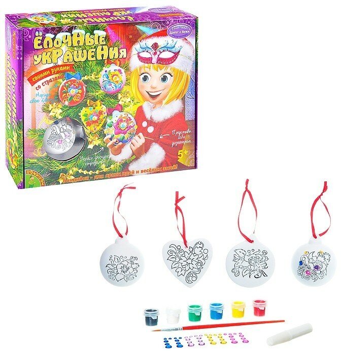 BONDIBON Набор для творчества Ёлочные украшения со стразами 2 шарика сердце круг ВВ1262