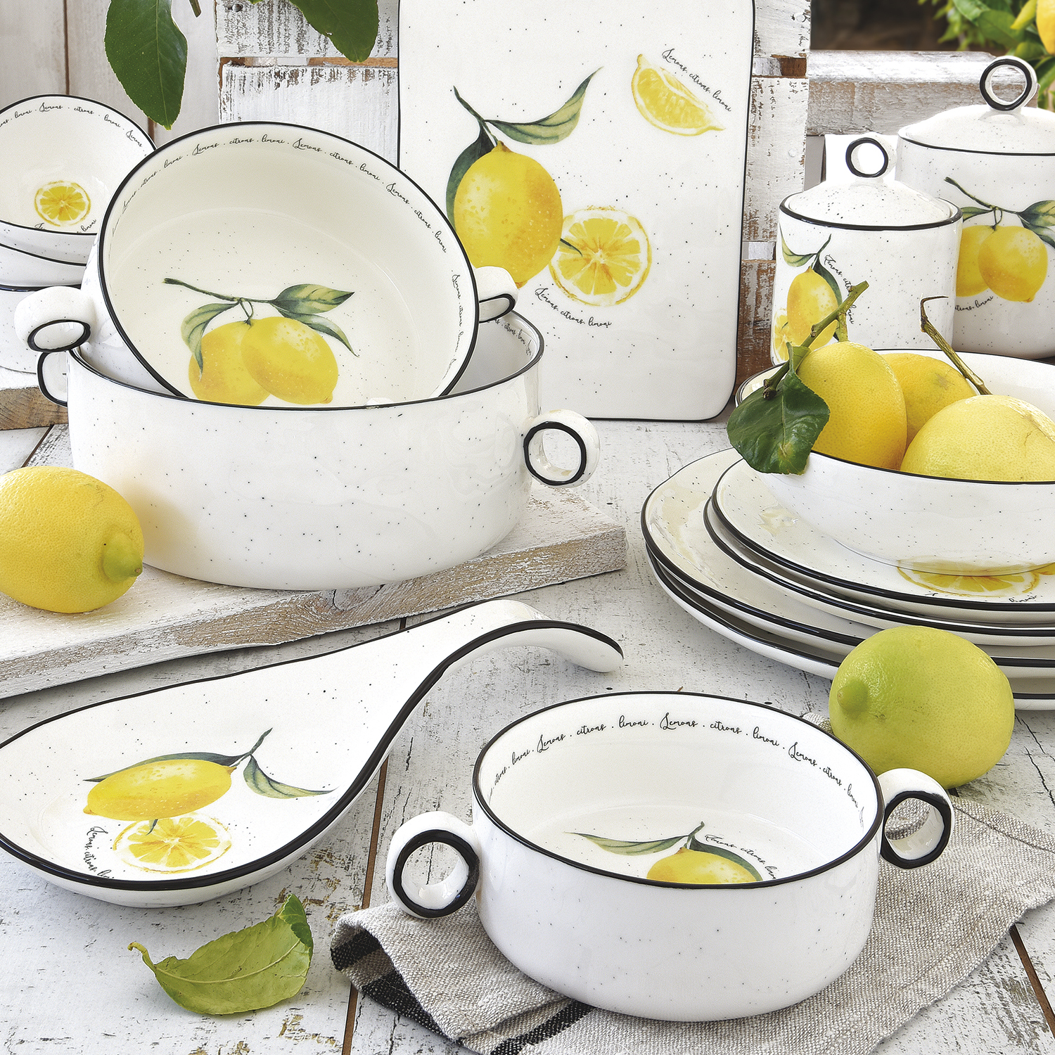 В коллекцию Amalfi от компании EasyLife (R2S) входят практичная столовая посуда и кухонные аксессуары, изготовленные из качественных, экологически чистых материалов – белоснежного фарфора, пищевого пластика, древесины бамбука. Изделия имеют органичные формы и украшены яркими, красочными изображениями сочных лимонов с зелеными листьями, стилизованными надписями и темными ободками. Дизайн серии воплощает собой тепло и гостеприимство солнечной Италии и отдает дань уважения городу Амальфи - жемчужине амальфитанского побережья. В линейке есть все необходимое для приготовления пищи, сервировки стола и украшения интерьера. Посуда и кухонные принадлежности Amalfi идеально подходят для повседневного использования. Фарфоровые предметы пригодны для использования в микроволновой печи и мытья в посудомоечной машине.