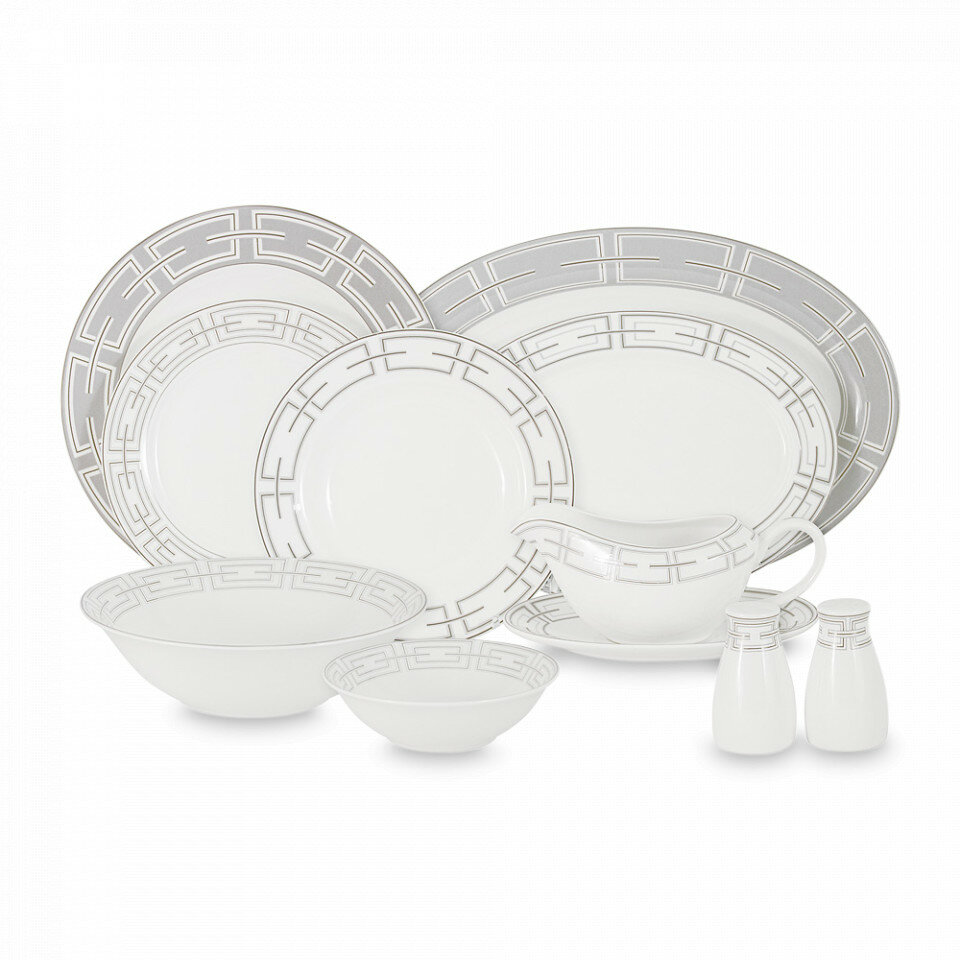 | Комплектация | Обеденная тарелка (27 см) - 12 шт, суповая тарелка (21 см) - 12 шт, закусочная тарелка (21 см) - 12 шт, салатник (23 см) - 2 шт, салатник (16 см) - 4 шт, блюдо (36 см) - 2 шт, блюдо (26 см) - 2 шт, соусник+блюдо под него - 1 шт, набор для специй - 1 шт. |