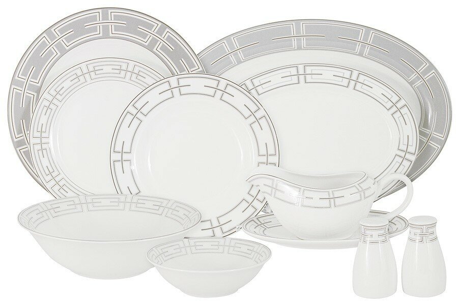 | Состав набора | тарелка обеденная диаметр 12 шт, тарелка суповая диаметр 22 см 12 шт, тарелка десертная диаметр 21 см 12 шт, салатник диаметр 23 см 2 шт, салатник диаметр 14 см 4 шт, блюдо диаметр 36 см 2 шт, блюдо диаметр 23 см 2 шт, соусник и блюдо под него, солонка, перечница |