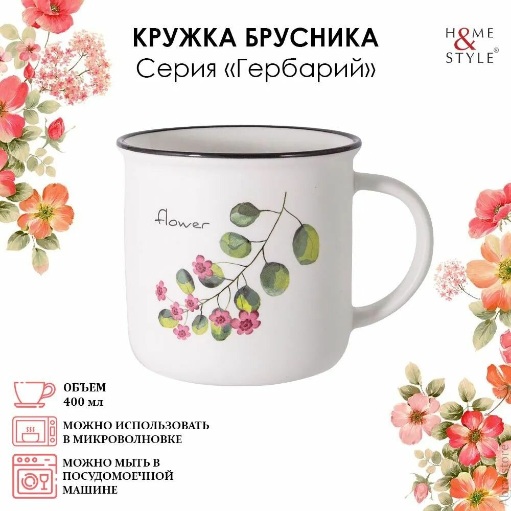 Классическая форма кружки и основной цвет - белый, делают ее универсальной и подходящей для любого интерьера. Цветочный дизайн придает ей особый шарм и делает ее прекрасным дополнением к сервировке стола.