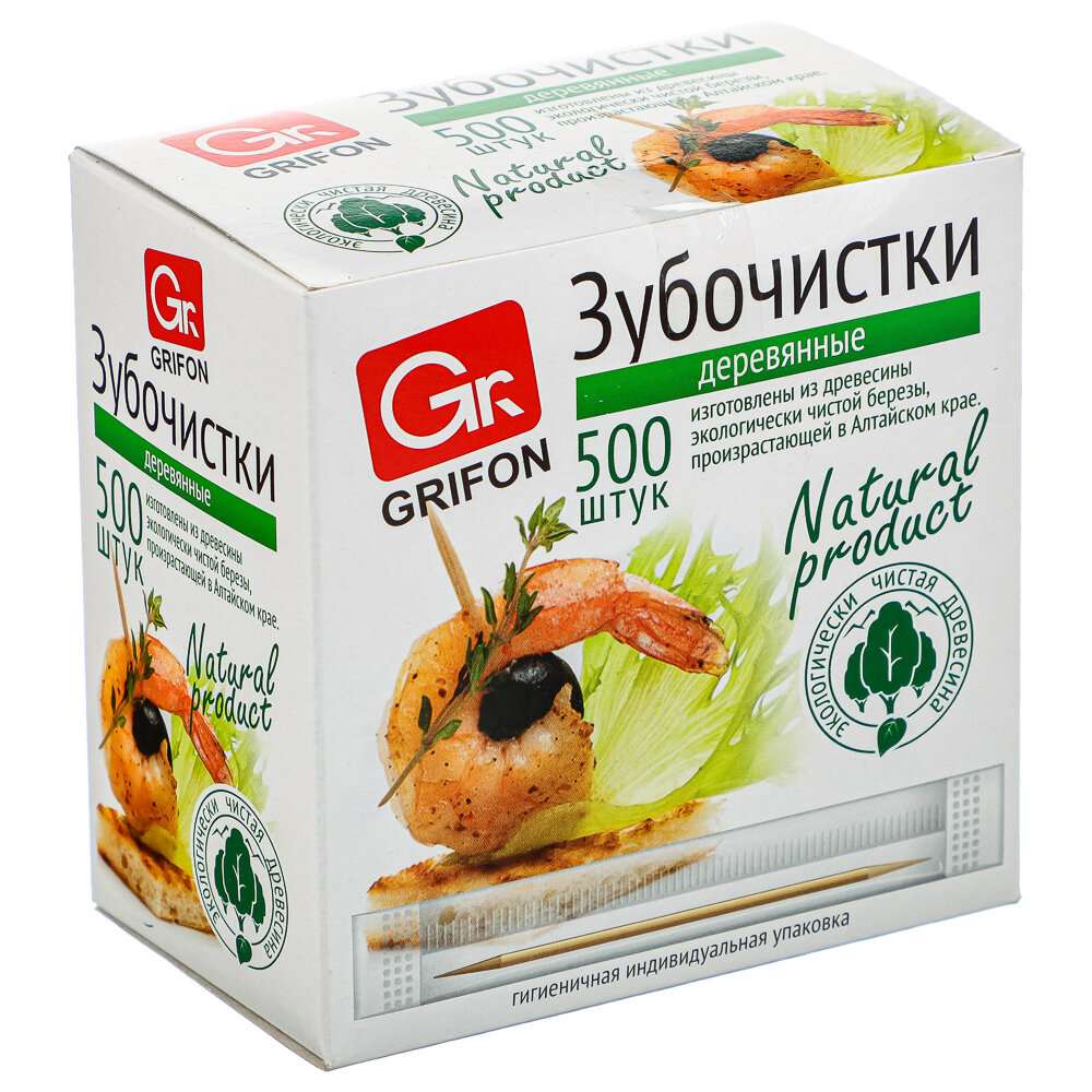Зубочистки из дерева GRIFON - в упаковке 500 зубочисток в индивидуальной упаковке. Подходят для дома и кафе. Зубочистки из березы: дерево не вызывает аллергию, из него делают посуду и кухонную утварь. Индивидуальная упаковка из полиэтилена - не промокает, защищает зубочистки от загрязнений, чтобы на них не попадали микробы. Как купить: добавьте в корзину и оформите заказ.