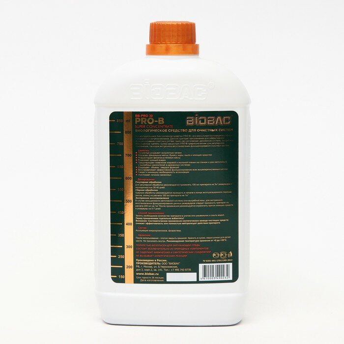BioBac Концентрированное биологическое средство для очистных систем Super Concentrate BB-PRO 30 1 л/ 1.026 кг БИОБАК