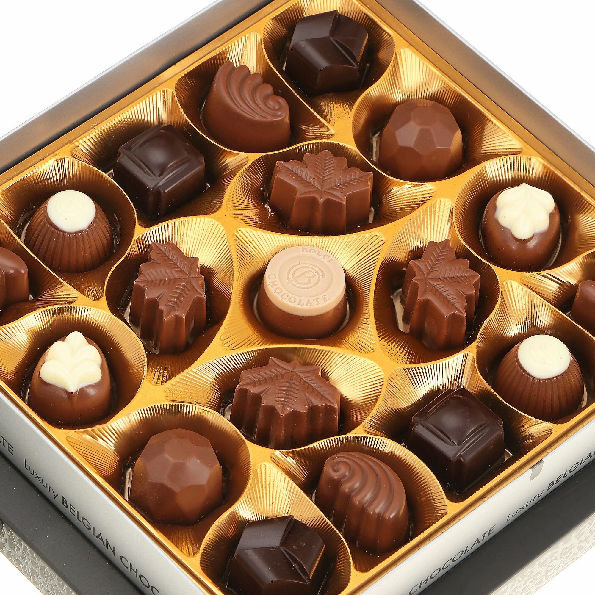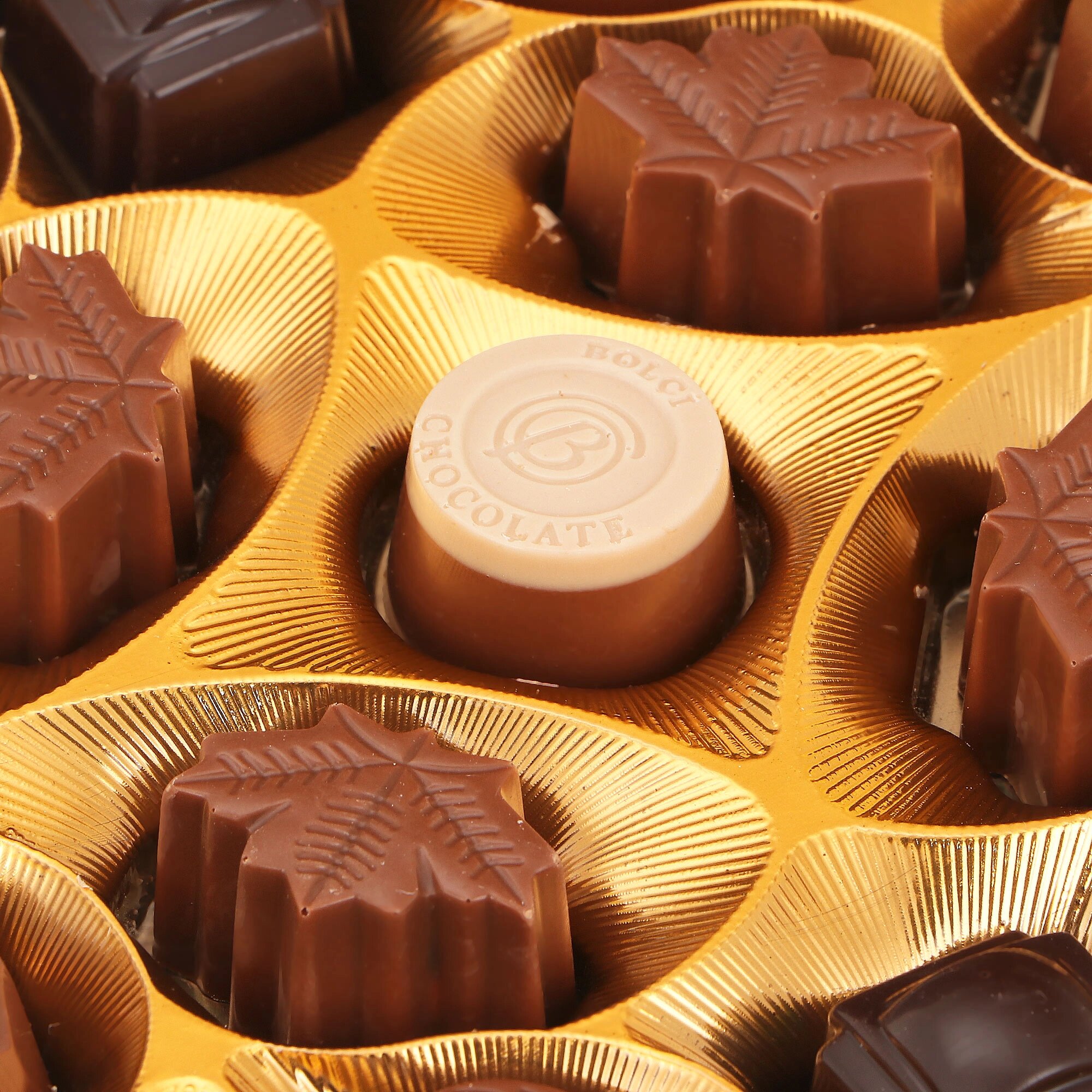 | Состав | Milk chocolate - sugar, cocoa butter, powdered milk , cocoa mass, emulsifier (sunflower lecithin (E322)), natural aroma (vanilla). Dark chocolate - sugar, cocoa butter, cocoa mass, emulsifier (sunflower lecithin (E322)), natural aroma (vanilla). White chocolate - sugar, cocoa butter, milk powder , emulsifier (sunflower lecithin (E322)), natural aroma (vanilla). Filling - P istáciový cream - sugar, whole powdered milk , skimmed milk powder , cocoa butter, emulsifier (sunflower lecithin (E322)), natural flavor (vanilla), sunflower oil, pistachio .Caramel Ganache - sugar, milk, butter , glucose syrup, salt, milk powder. White cream - sugar, whole milk powder , skim milk powder , cocoa powder, emulsifier (sunflower lecithin (E322)), natural aroma (vanilla), sunflower oil. Raspberry Ganache - raspberries, glucose syrup, sugar, aroma (raspberry), salt, acidity regulator (citric acid (E330)). Gianduja hazelnut nougat - sugar, hazelnuts , whole milk powder , skimmed milk powder, butter , sunflower oil, emulsifier (sunflower lecithin (E322)), cocoa butter, cocoa mass, salt. Orange ganache- orange, glucose syrup, sugar, milk, butter , salt, orange flavor, milk powder , cocoa butter. Lemon Ganache - lemon, milk, butter , glucose syrup, sugar, cocoa butter. Strawberry Ganache - strawberries, glucose syrup, sugar, aroma (strawberry), salt, acidity regulator (citric acid (E330)). Almond nougat Gianduja - sugar, almonds , whole milk powder , skim milk powder , butter , sunflower oil, emulsifier (sunflower lecithin (E322)). Hazelnut croissant - sugar, glucose syrup, hazelnuts . |