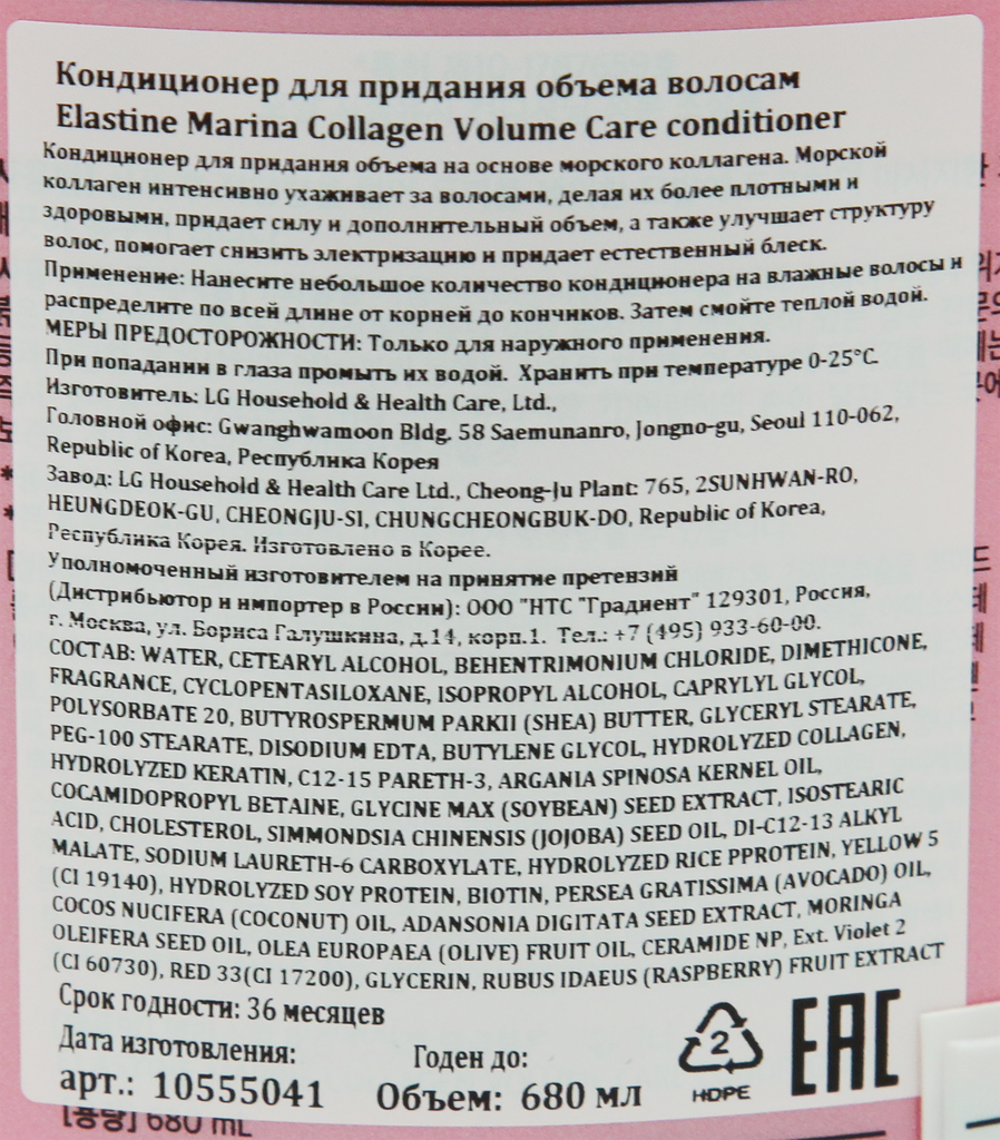 Сервис сравнения цен СкидкаГИД предлагает сравнить цены на товар «Кондиционер для волос ELASTINE Maximizing Volume с морским коллагеном 680 мл»