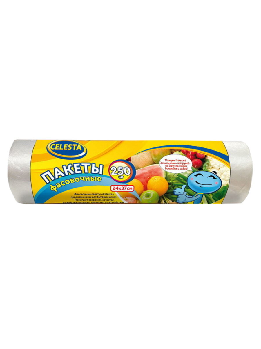 Пакеты фасовочные в рулоне 250шт 6 мкм 24*37см «CELESTA» Фасовочные пакеты «Celesta» — храните продукты в удобной и практичной упаковке. С их помощью вы надолго обеспечите свежесть блюд и защитите их от негативного воздействия внешней среды. Данный вид полиэтиленовой продукции обеспечит любым изделиям надежную защиту от влаги или загрязнений. Он подходит для многократного использования и отличается универсальностью и низкой ценой за счет широкого спектра применения.