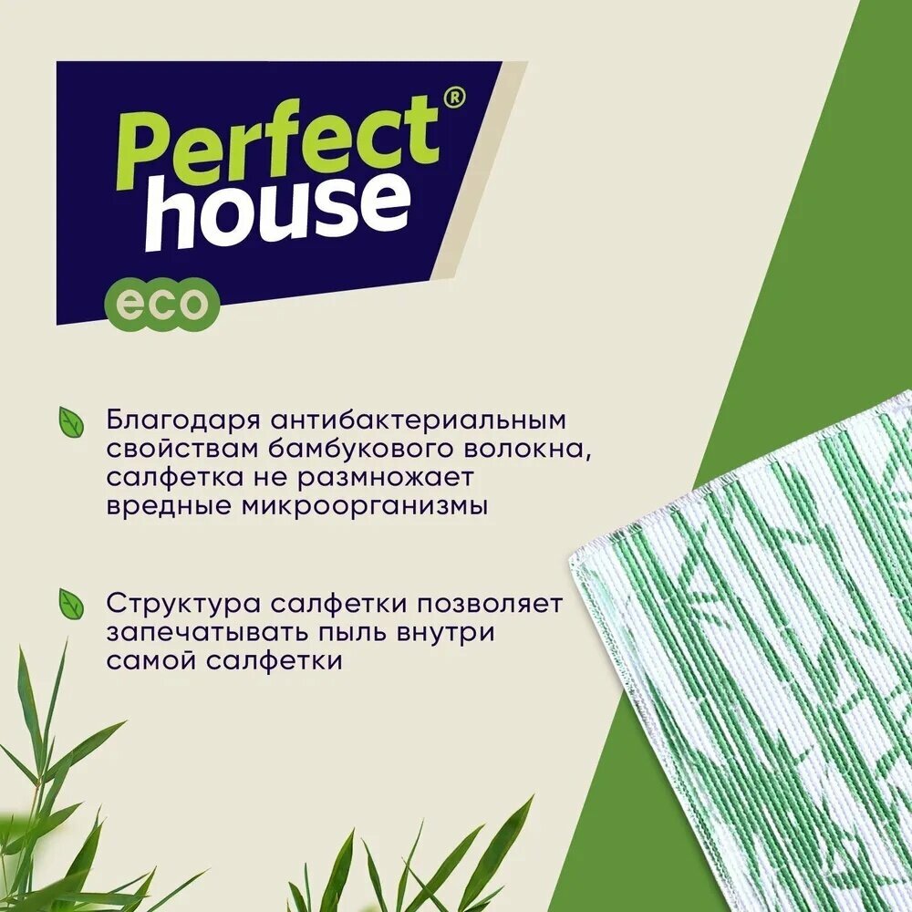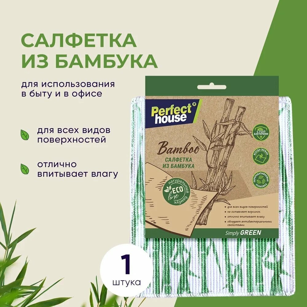 Универсальная многофункциональная салфетка из бамбука серии Есо Line торговой марки Perfect House для ухода за глянцевыми и матовыми поверхностями. Легко и быстро удаляет пыль, абсорбирует любую грязь, разводы и потёки, отпечатки пальцев. Предназначена для ухода за глянцевыми темными и светлыми поверхностями: окнами, столешницами, стеклокерамическими варочными панелями, зеркалами. Салфетка из натурального волокна отлично подходит для натирки бокалов, столовых приборов. Не оставляет разводов, не сыпется, легко стирается. Особая структура салфетки позволяет запечатывать пыль, мелкий мусор и ворсинки внутри ткани. Не требует особого ухода: быстро выполаскивается под струей теплой воды без применения моющих средств. Бамбуковое волокно - натуральный экологичный материал, обладает антибактериальными и дезодорирующими свойствами, благодаря этому салфетка из бамбука не гниет, не разлагается, не впитывает запахи.