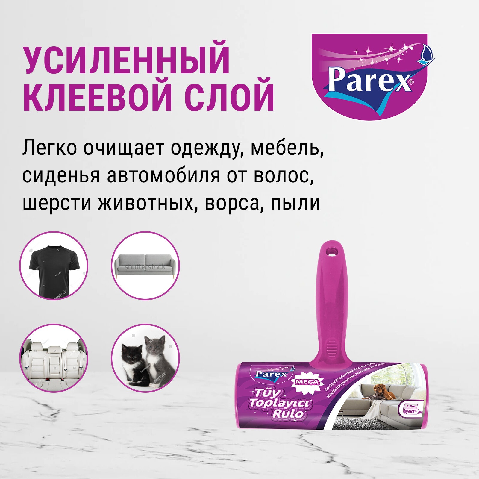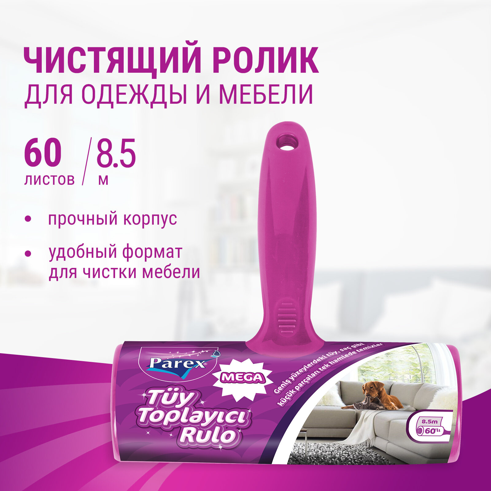 Чистящий липкий ролик для одежды PAREX MEGA легко очищает одежду, мебель, сиденья автомобиля от волос, шерсти животных, ворса, пыли благодаря усиленному клеевому слою. Идеальный горизонтальный формат для большой площади очистки. Прочный корпус.Ролик содержит 60 липких листов шириной 16 см.Дополнительные сменные блоки можно приобрести отдельно.