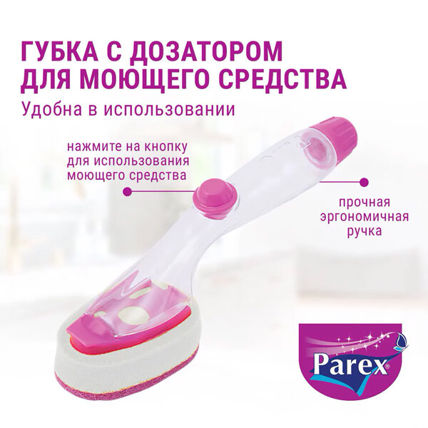 Губка Parex универсальная полиэстер с резервуаром для моющего средства бело-розовая
