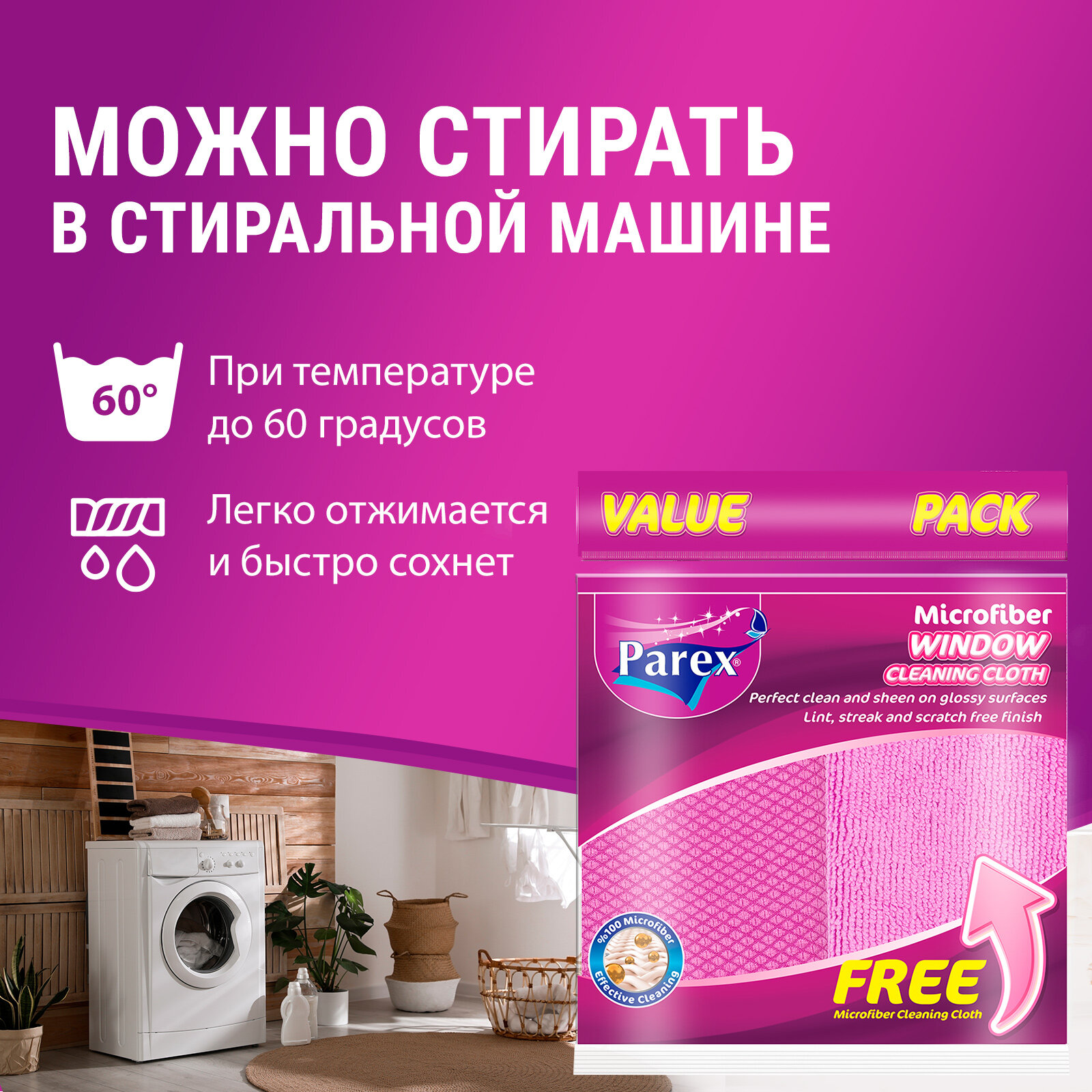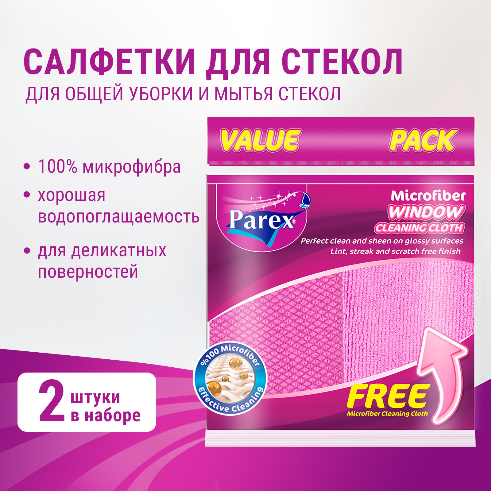 Микроволоконные универсальные салфетки для уборки PAREX произведены с использованием передовых технологий. Благодаря тонкой текстуре пряжи, которая в 100 раз тоньше волоса, намного лучше впитывают воду и лучше очищают загрязнения, чем традиционные салфетки. Не оставляют пятен и разводов. Тряпки Parex большого размера и прошиты по краям.Можно стирать в стиральной машине.Размер: 38 х 28 см. В упаковке 4 шт.