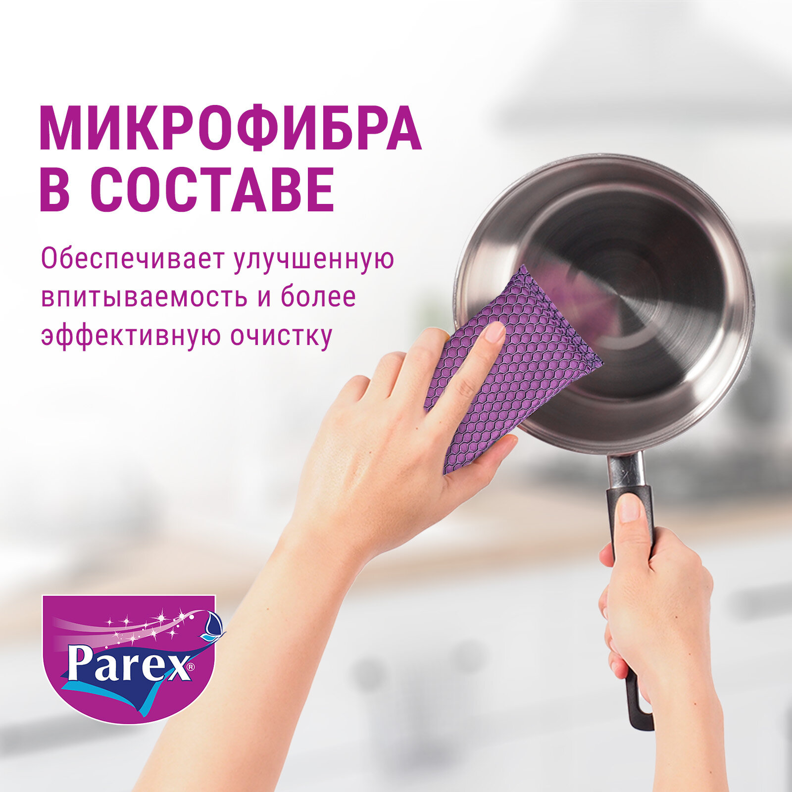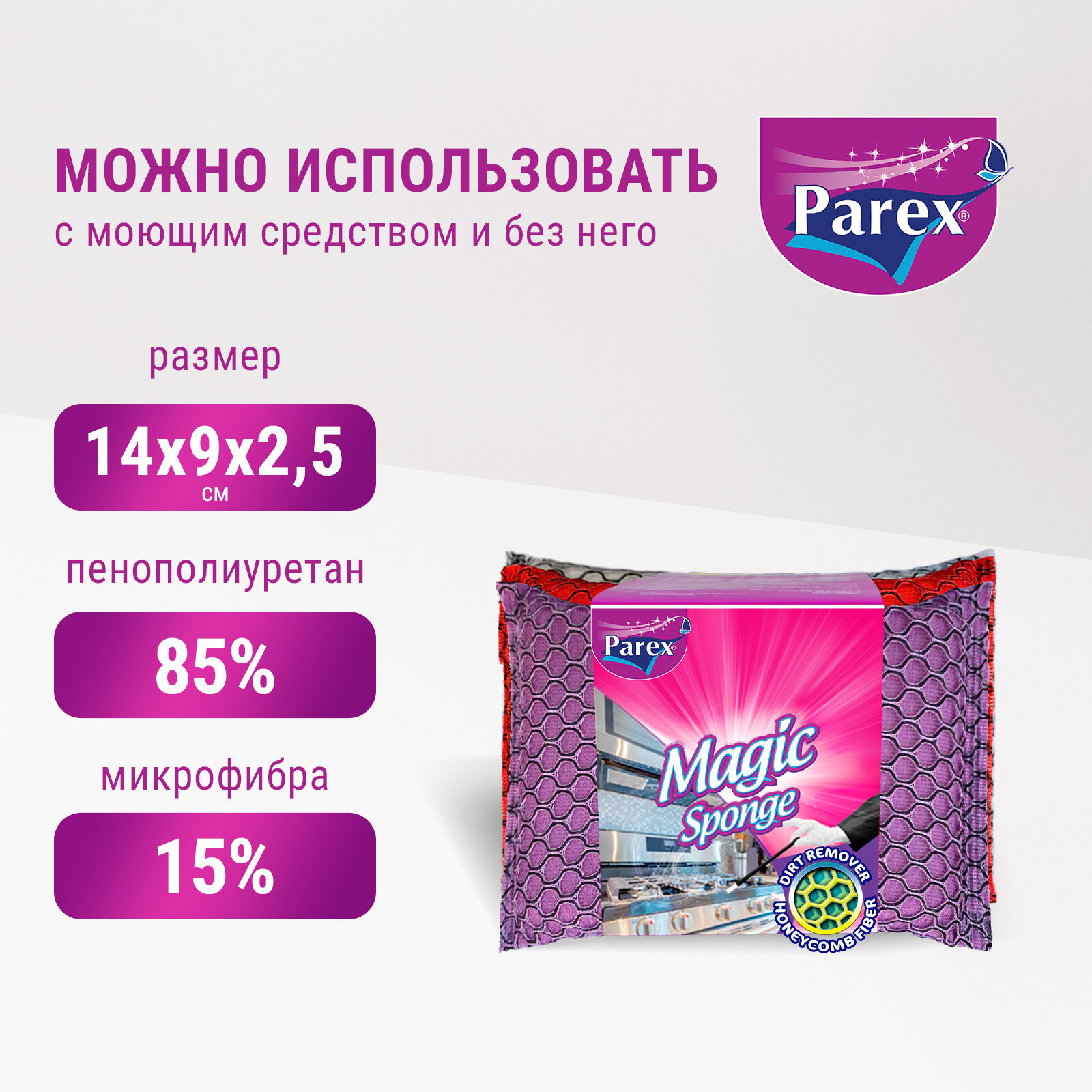 Губка из микрофибры PAREX MAGIC для уборки и мытья посуды обеспечивает великолепную чистоту кухни и посуды.Особая текстура легко очищает сложные загрязнения и пятна, благодаря обильному вспениванию, не царапая поверхности.Превосходный результат на таких сложно очищаемых поверхностях, как столешница, поверхность плиты и вытяжка. Идеально подходит для очистки, как с моющим средством, так и без него.В наличии представлены 8 вариантов цвета.В упаковке 3 шт.