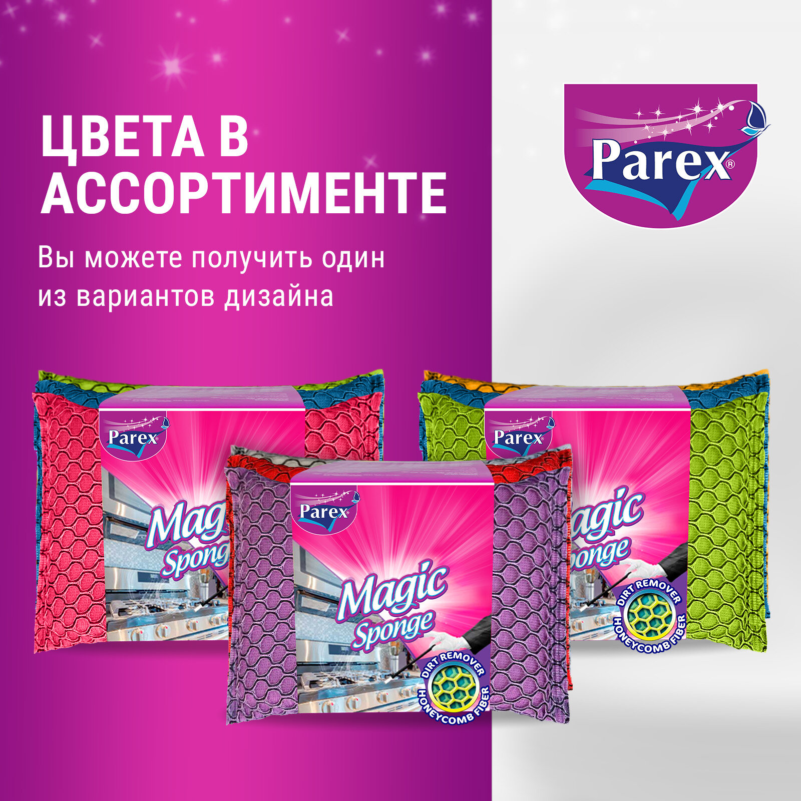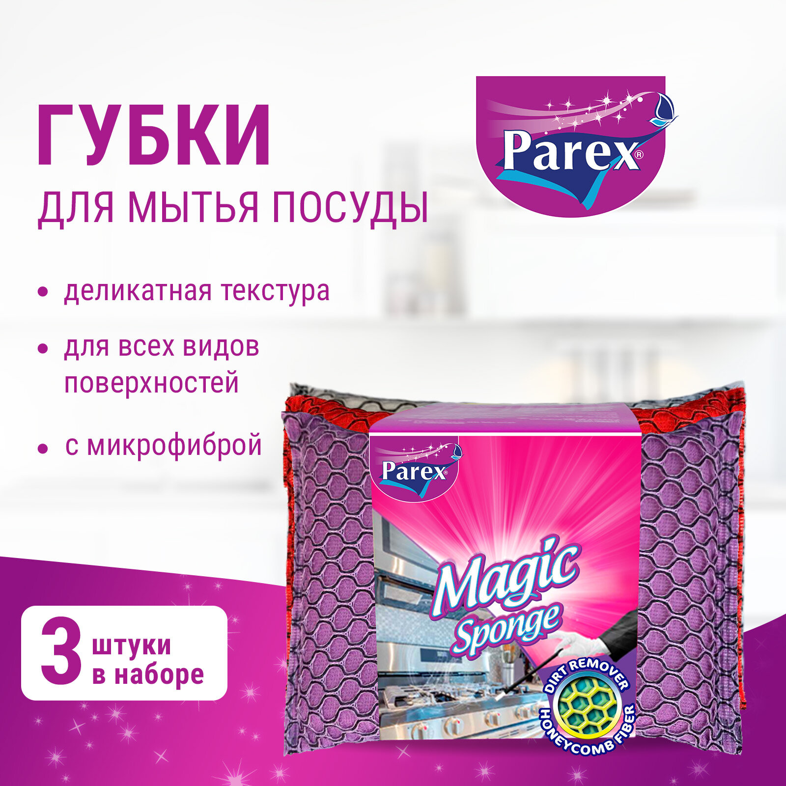 Губки универсальные Parex Magic микрофибра 3 шт. в ассортименте