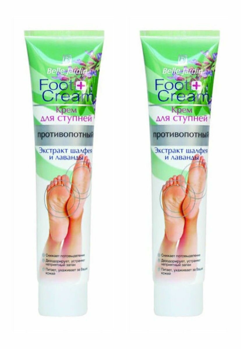 Крем для ступней преднаначен для ежедневного ухода за нежной кожей ступней. Содержит активные противопотные и противогрибковые компоненты. Питает и дезодорирует кожу, уменьшает потоотделение. Ароматизирующая добавка устранит неприятный запах пота, не нарушая естественного функционирования кожи. Дополнительно крем приносит облегчение потресканной и сухой кожи ступней, предупреждает образование трещин, ликвидирует утолщения. Экстракт шалфея нормализирует работу потовых желез. Экстракт лаванды, масло чайного дерева оказывают эффективное антибактериальное, противогрибковое и антисептическое действие. Пчелиный воск питает и смягчая кожу. Ментол дарит ощущение свежести и прохлады Вашим ногам. В комплекте 2 штуки.