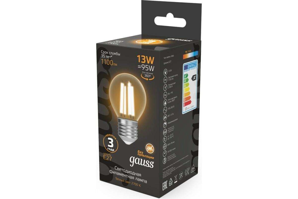 Gauss Лампа Filament Шар 13W 1100lm 2700К Е27 LED 1/10/50 105802113