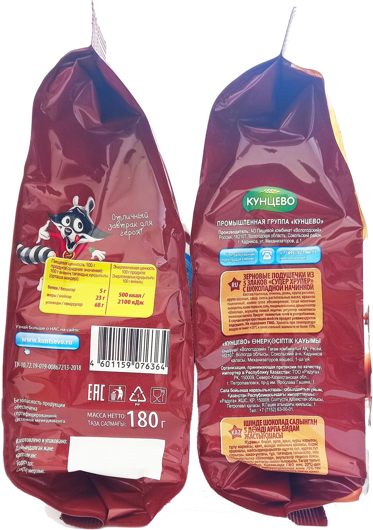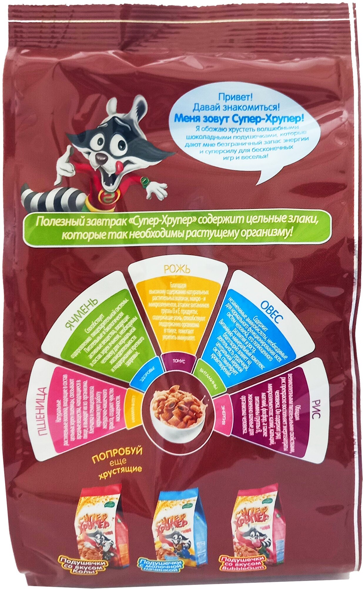 Подушечки зерновые из 5 злаков с шоколадным вкусом "Супер Хрупер" 180 гр 4 шт.