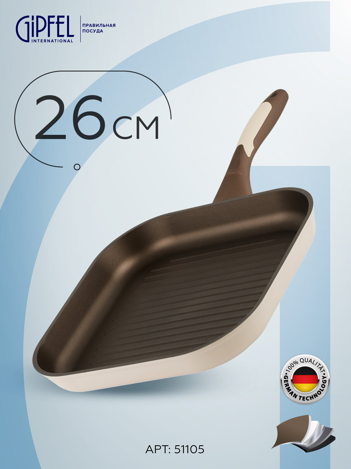 Сковорода-гриль GIPFEL STADELLA BEIGE 51105 26 см STADELLA BEIGE сковорода-гриль