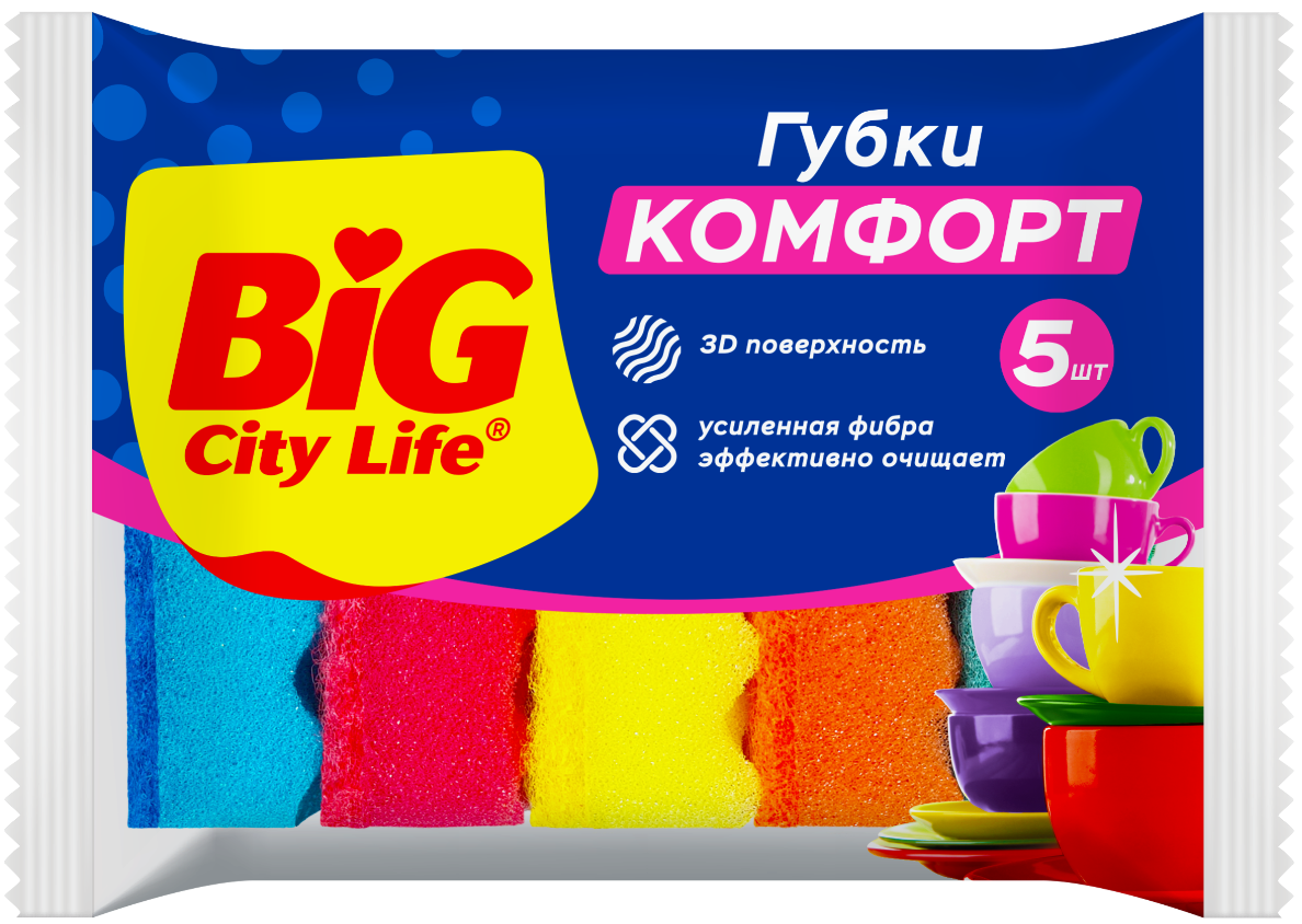 Big City Life Комфорт Губки кухонные с волнистой поверхностью 5 шт