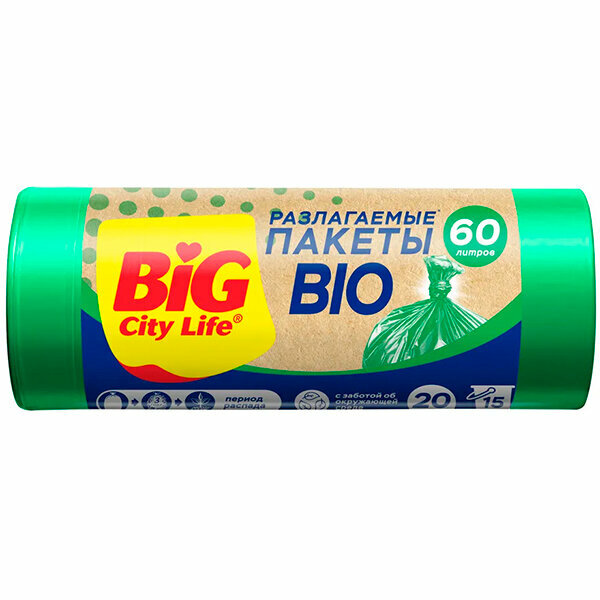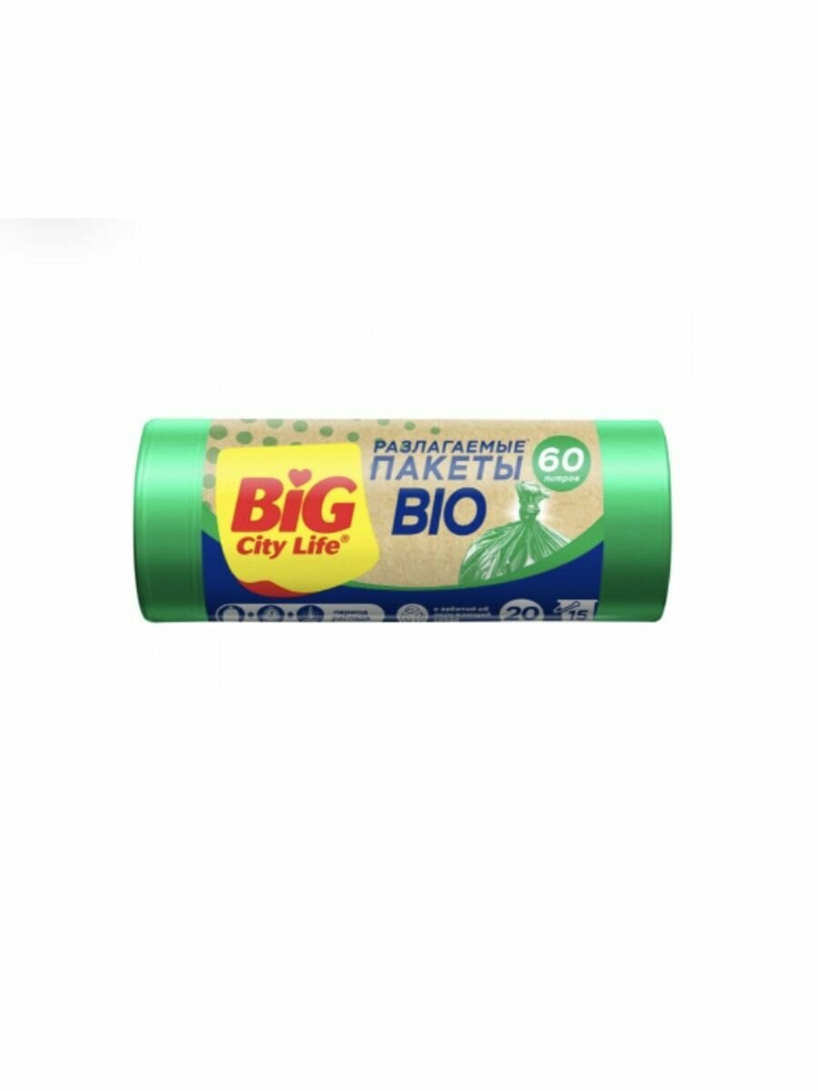 Мешки для мусора Big City Life Bio HD 60 л зеленые 20 шт