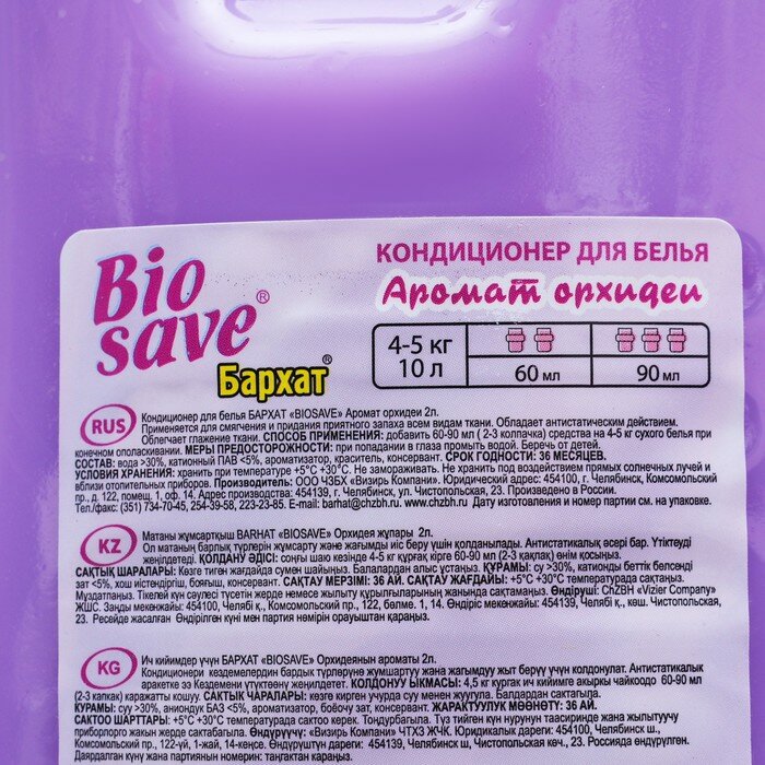 КОНДИЦИОНЕР ДЛЯ БЕЛЬЯ БАРХАТ BIOSAVE (АРОМАТ ОРХИДЕЙ) 2 Л (1/10)