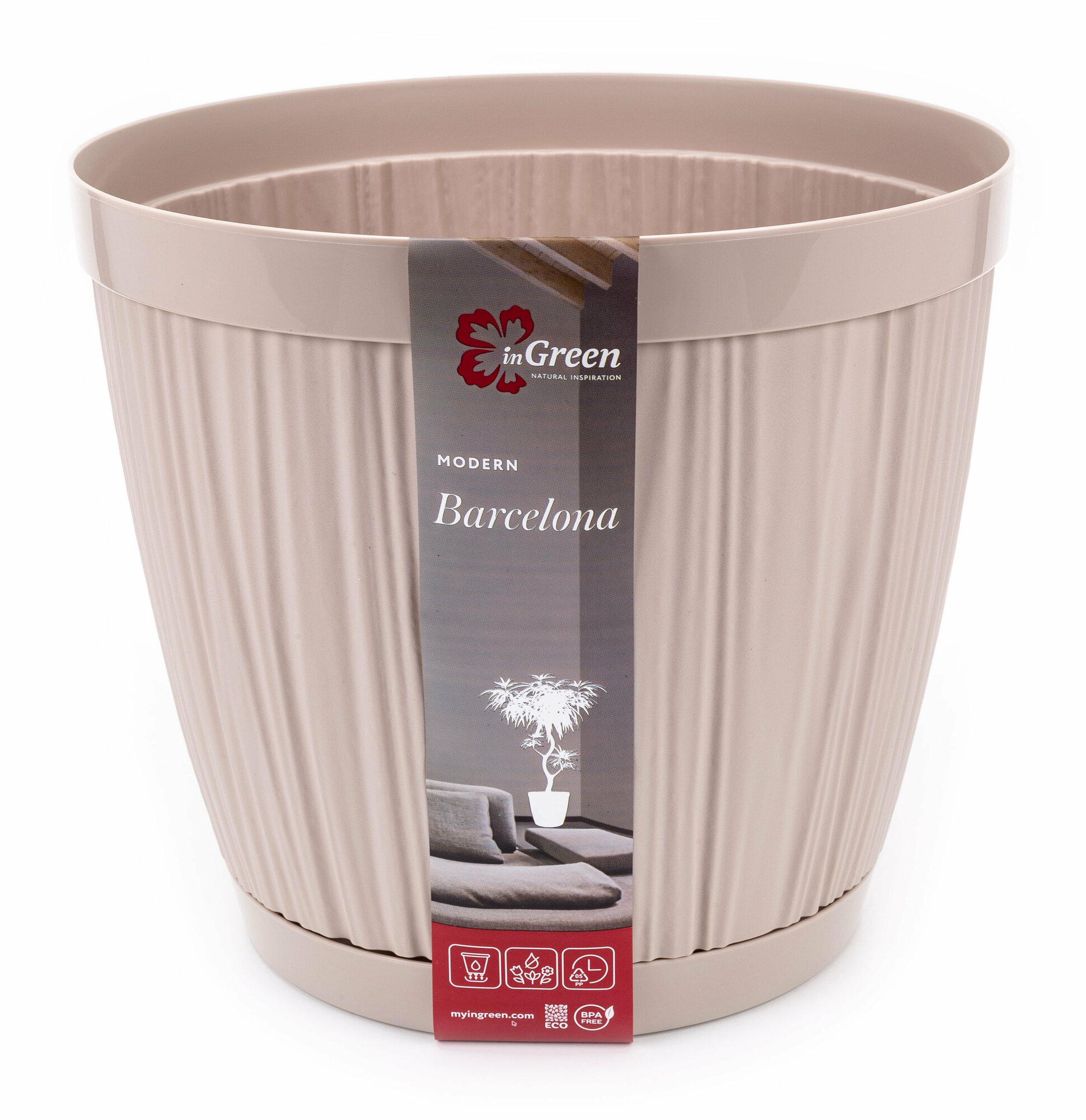 Настоящие любители растений знают, что им требуется постоянный и тщательный уход. Только в таком случае они будут радовать своим видом долгое время. Естественно, огромную роль в этом играют и емкости, в которых растения находятся. Горшок для цветов InGreen BARCELONA лучший выбор, чтобы содержать зеленые насаждения дома или в квартире. Коллекция изделий имеет оригинальный дизайн и прекрасно впишется в любой интерьер. Горшок InGreen BARCELONA выполнен из высококачественного материала. Отличается прочностью и надежностью, а также превосходной устойчивостью к постоянному воздействию влаги. В основании горшка имеются дренажные отверстия. Они необходимы растениям, требующим редкий полив. Цветочный горшок InGreen BARCELONA имеет диаметр 24 см. Объем горшка составляет 6,5 л. Цвет изделия - светло-коричневый. Любите растения и хотите сделать у себя дома настоящий сад? Купите горшок цветочный InGreen BARCELONA. Он поможет вам в этом!