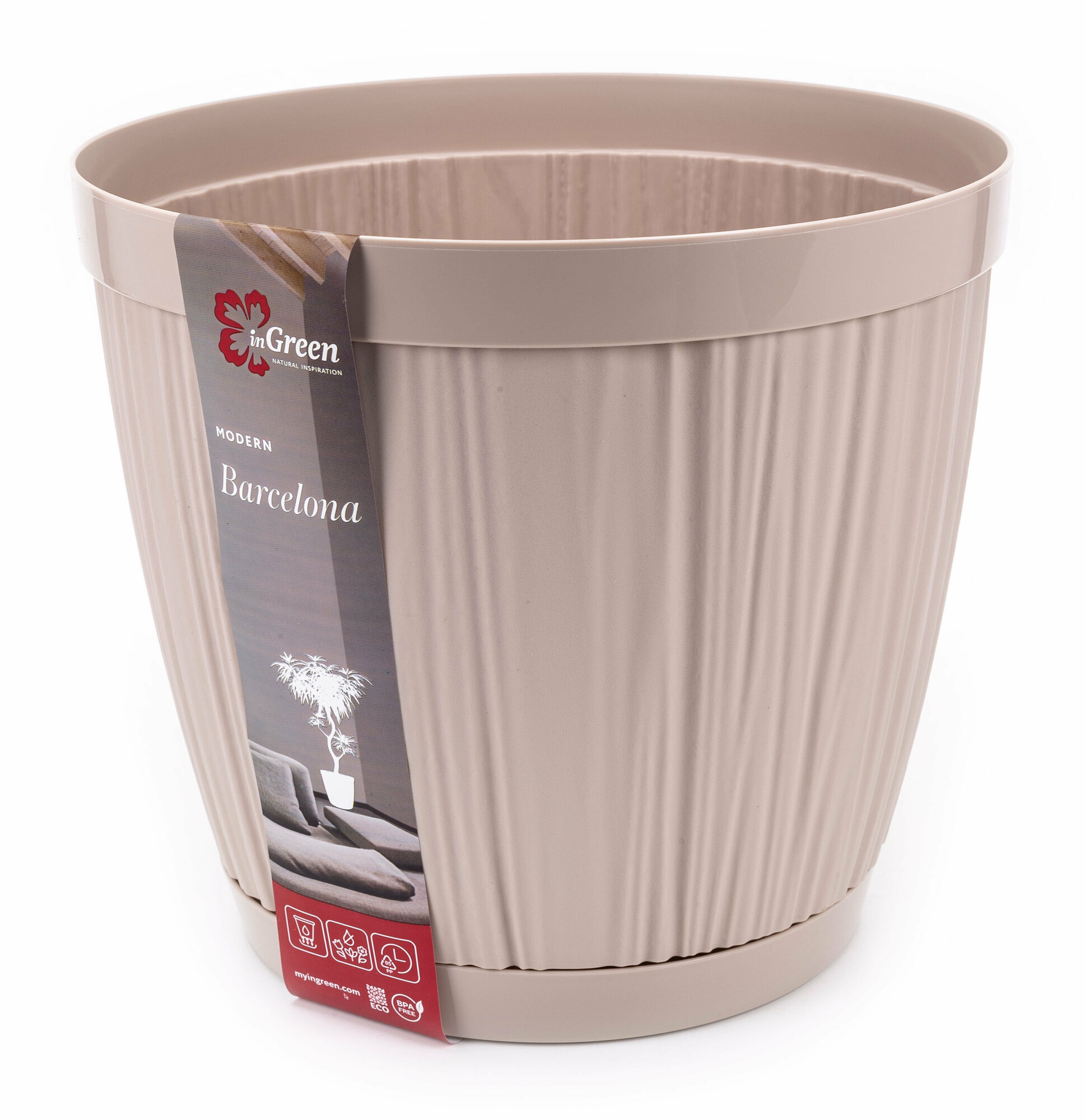 Горшок InGreen Barcelona 6.5л d24см молочный шоколад