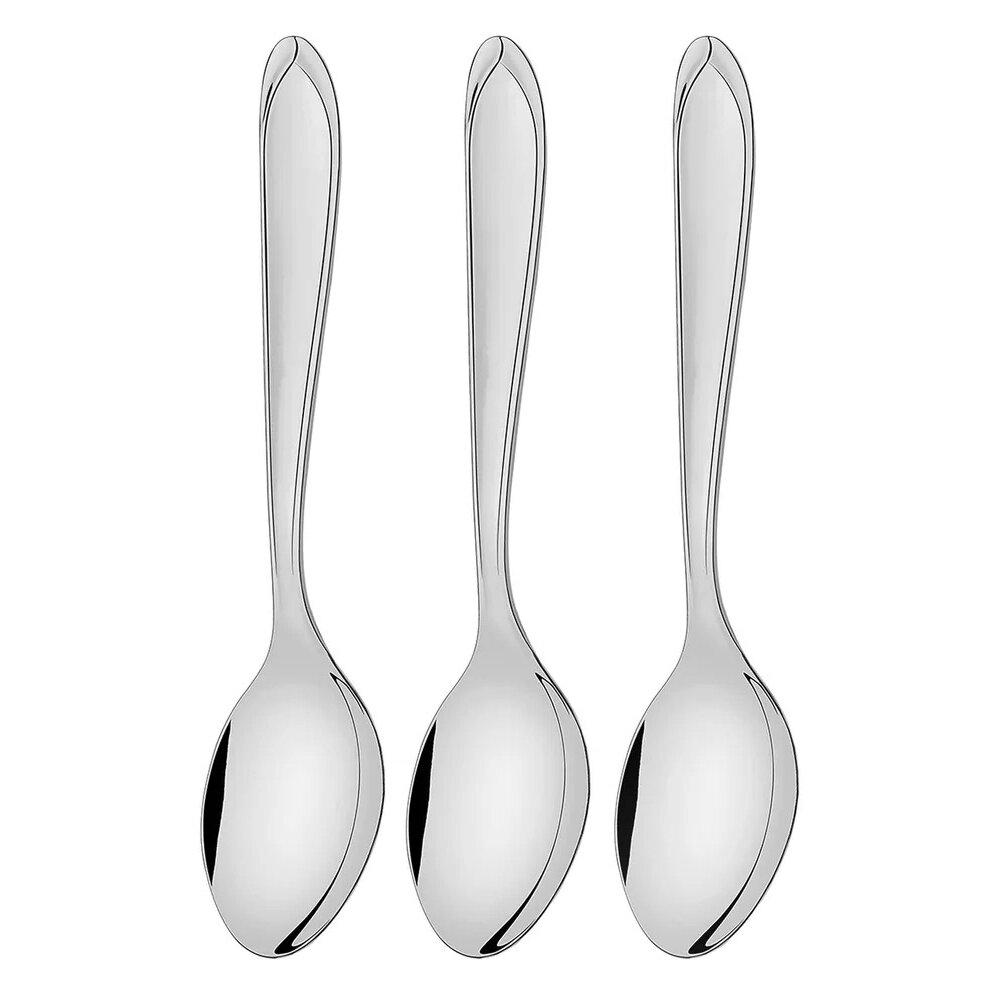Полностью изготовленные из нержавеющей стали, очень прочные, они сохраняют свои оригинальные характеристики, сохраняя красоту, гигиену и долговечность материала. Ложки с выпуклостью в симметричном формате и тщательно закругленные края, обеспечивающие больший комфорт в использовании.Глянцевая отделка. Подходит для повседневного использования в сочетании с любой окружающей средой. Их можно мыть ежедневно в посудомоечной машине.Материал: нержавеющая сталь.Количество: 3 штуки.
