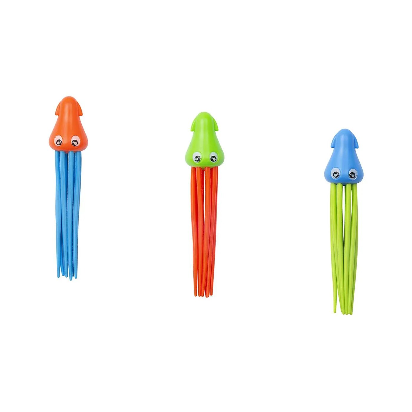 Набор игрушек для ныряния Кальмары позволит весело и с пользой провести время в бассейне. Такое уникальное изобретение научит ребенка нырять в бассейн и быстро плавать! Данный набор отличное средство для развития навыков ориентирования в пространстве и зрительно-моторной координации. Состоит из трех ярких симпатичных игрушек-кальмаров. Изготовлены кальмары из мягкого, гибкого материала. Техническое описаниеТип: подводный набор игрушек для нырянияКоличество предметов в наборе: 3 шт. Материал: пвхрекомендованный возраст: 3+КомплектацияИгрушки для ныряния (3 шт.)