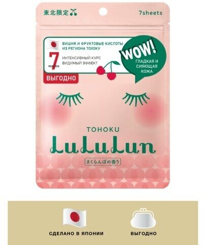 Набор масок для лица LuLuLun Cherry Tohoku обновление и сияние тканевые 108 мл 7 шт.